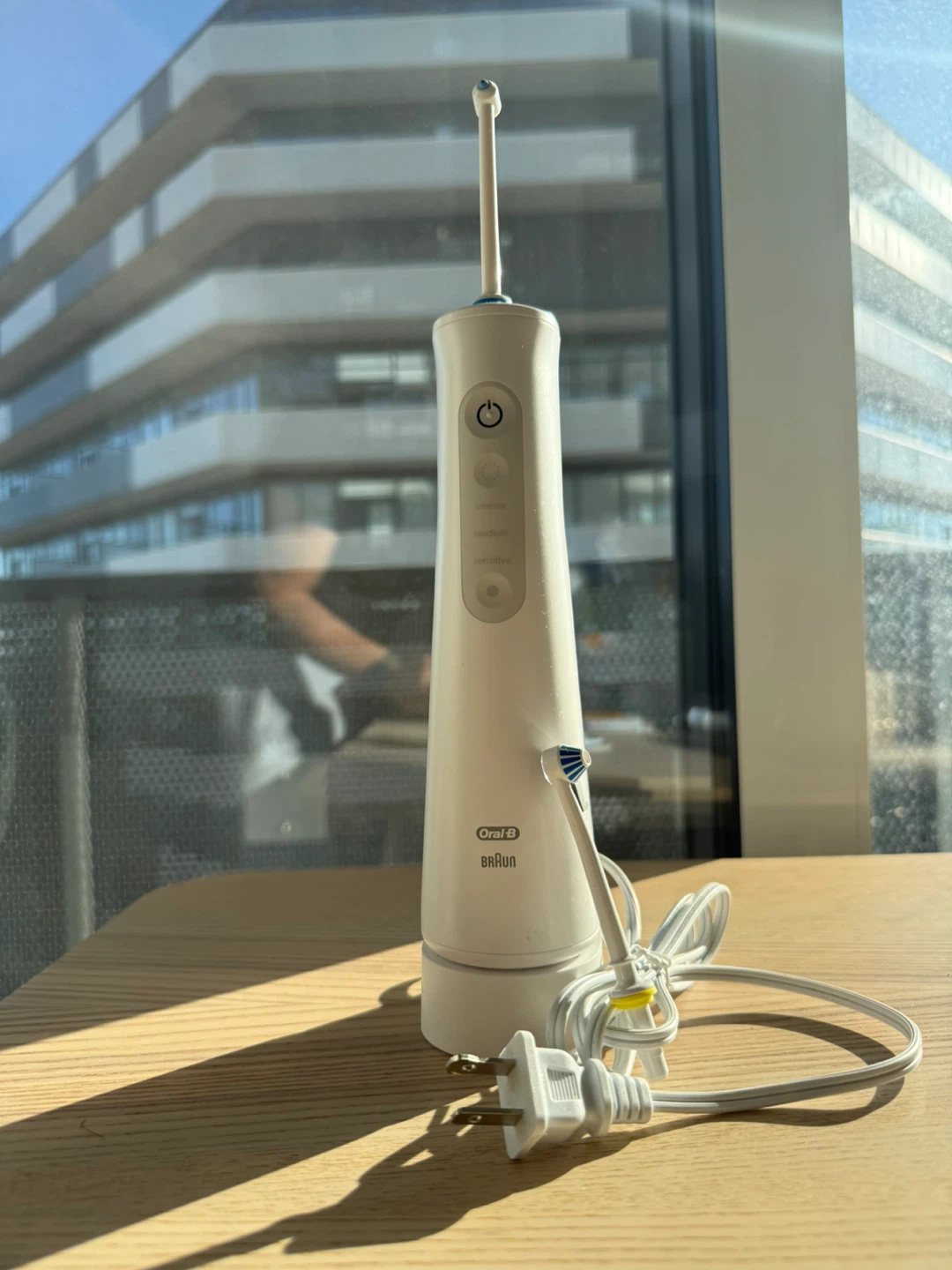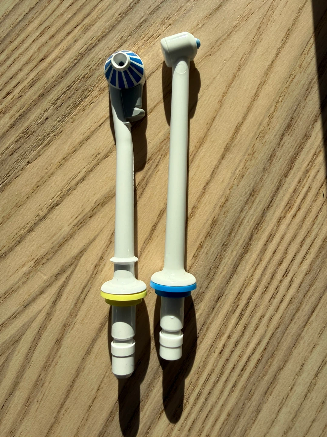 I'm selling an Oral-B Braun water flosser. It's in great condition and ready to use! It comes with the pictured attachments.