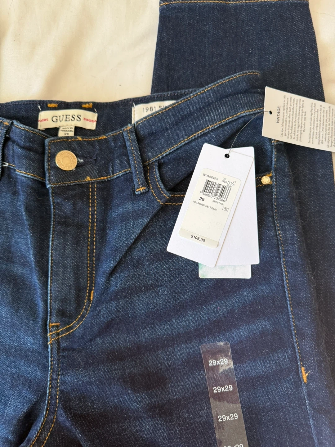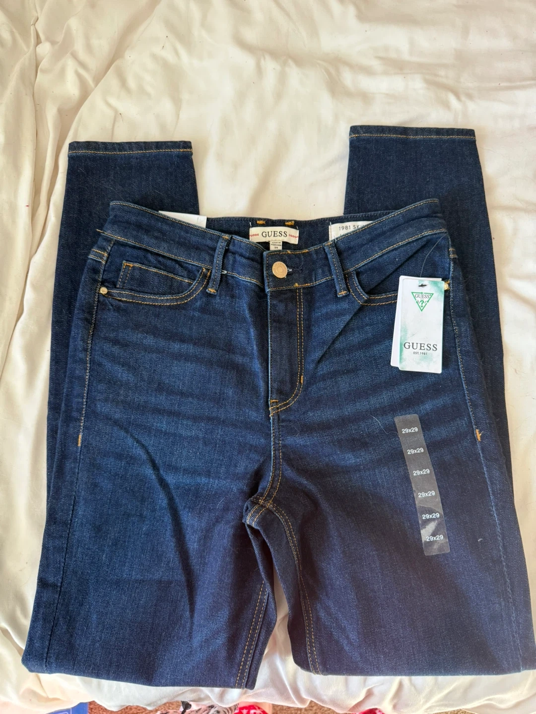 Brand new Guess 1981 Skinny jeans in size 29. They're a dark wash denim and have never been worn. Bought for $108 - Asking price $50 OBO