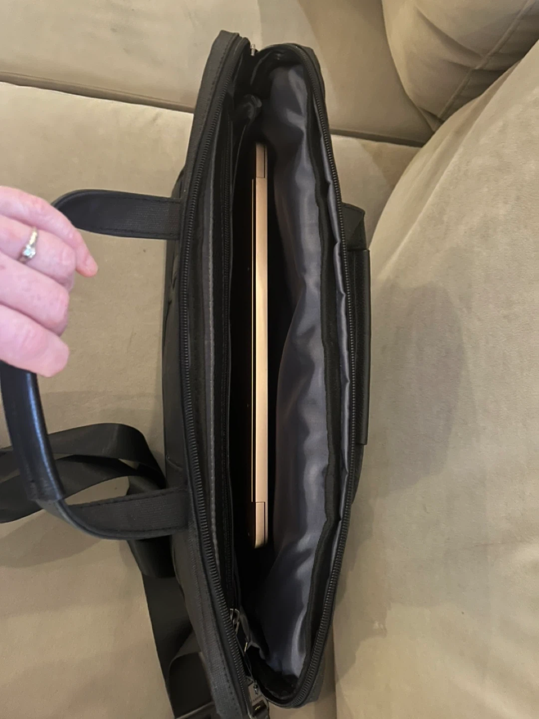 Selling a Blackbook laptop bag in brand new condition! It's black and sleek, perfect for carrying your laptop and other essentials. It includes a shoulder strap for easy carrying and has plenty of compartments to keep everything organized. Will easily fit a 14” laptop. Shown with my 13” laptop (not included).