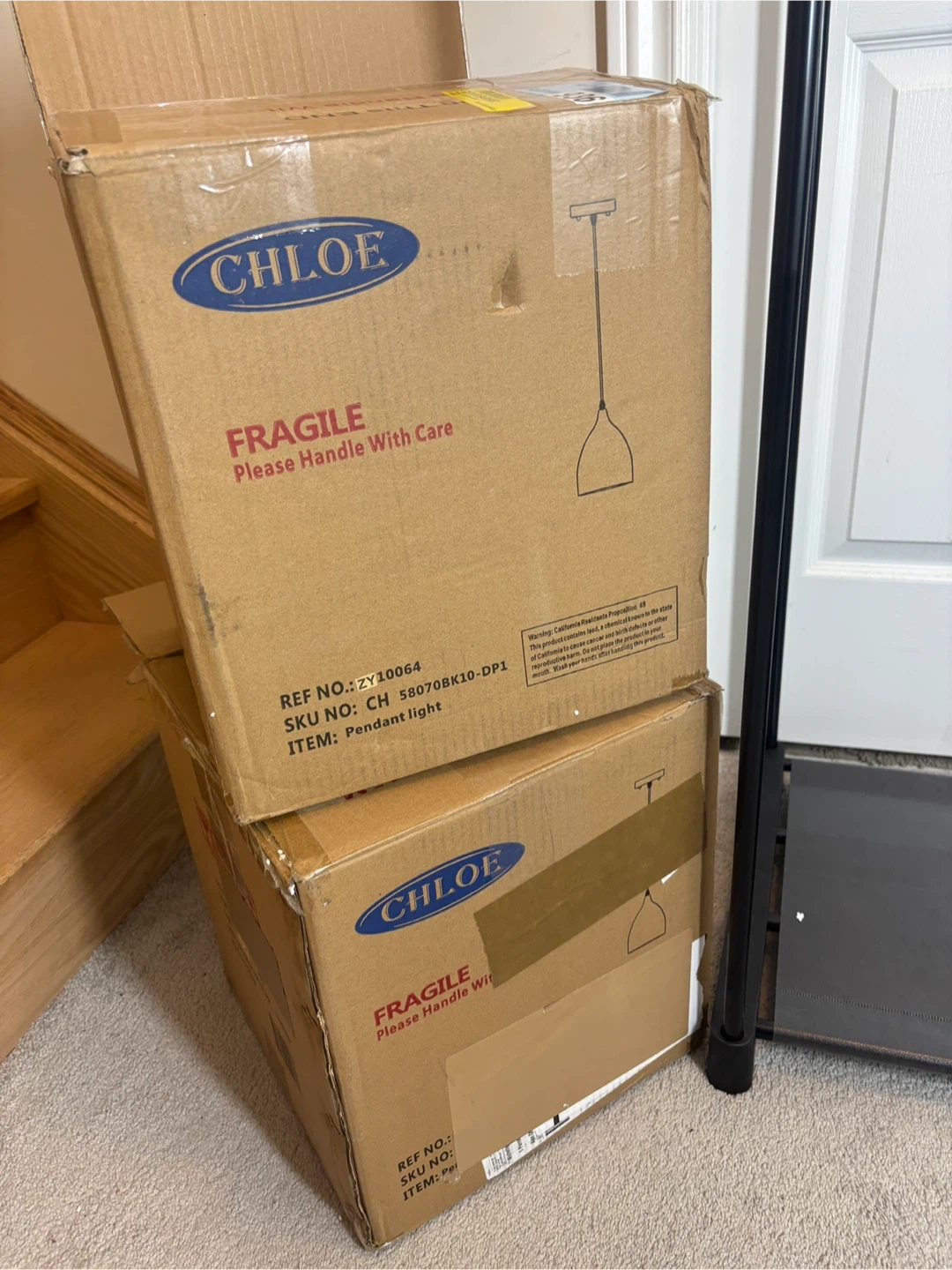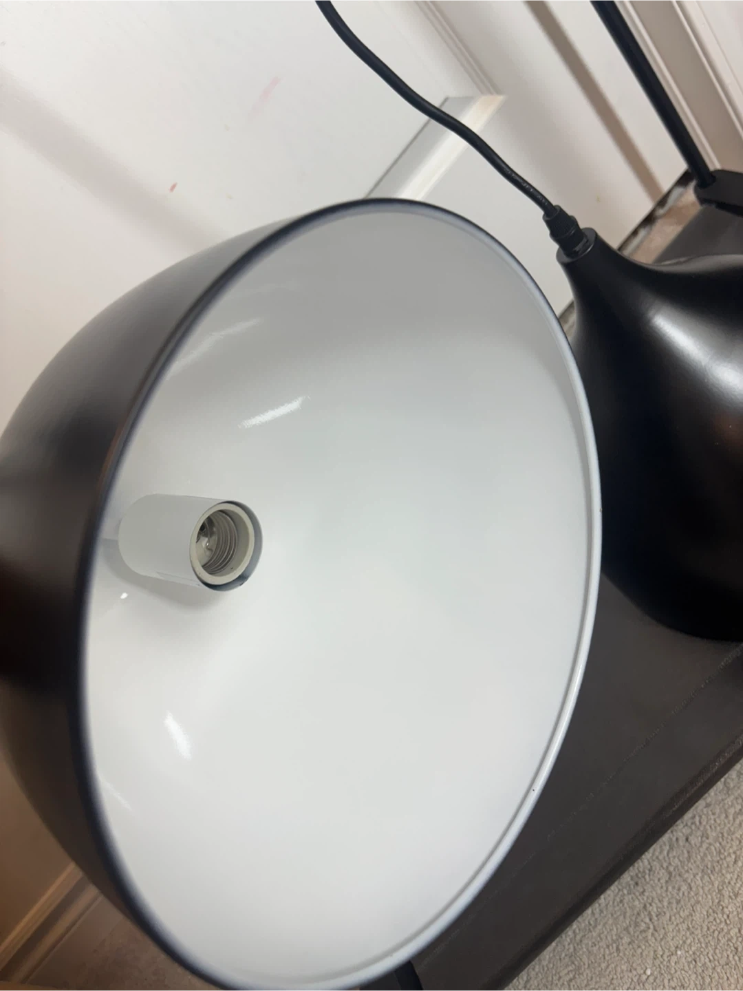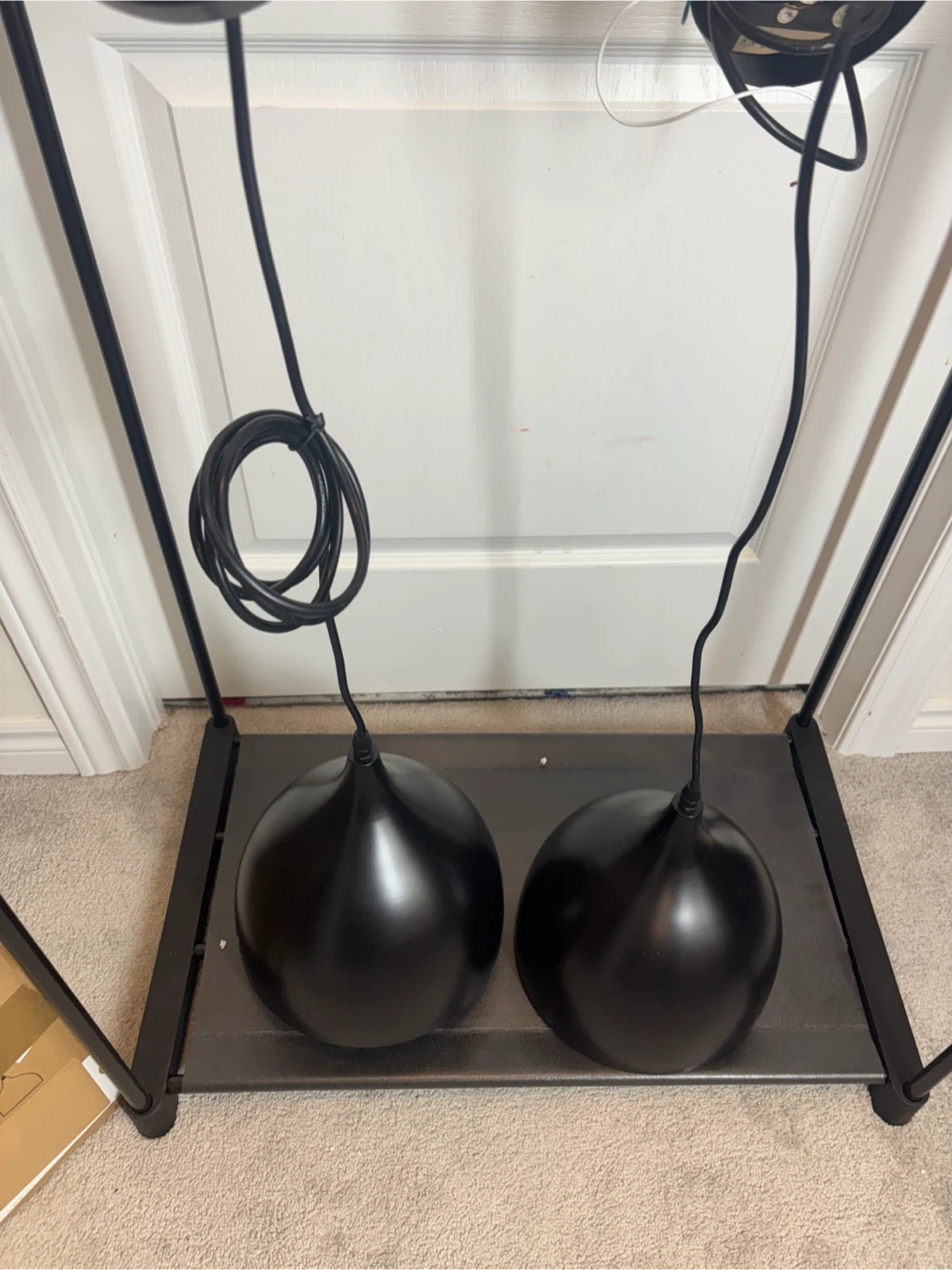Selling a set of two pendant lights in black. The lights have a teardrop shape and would look great in any room.