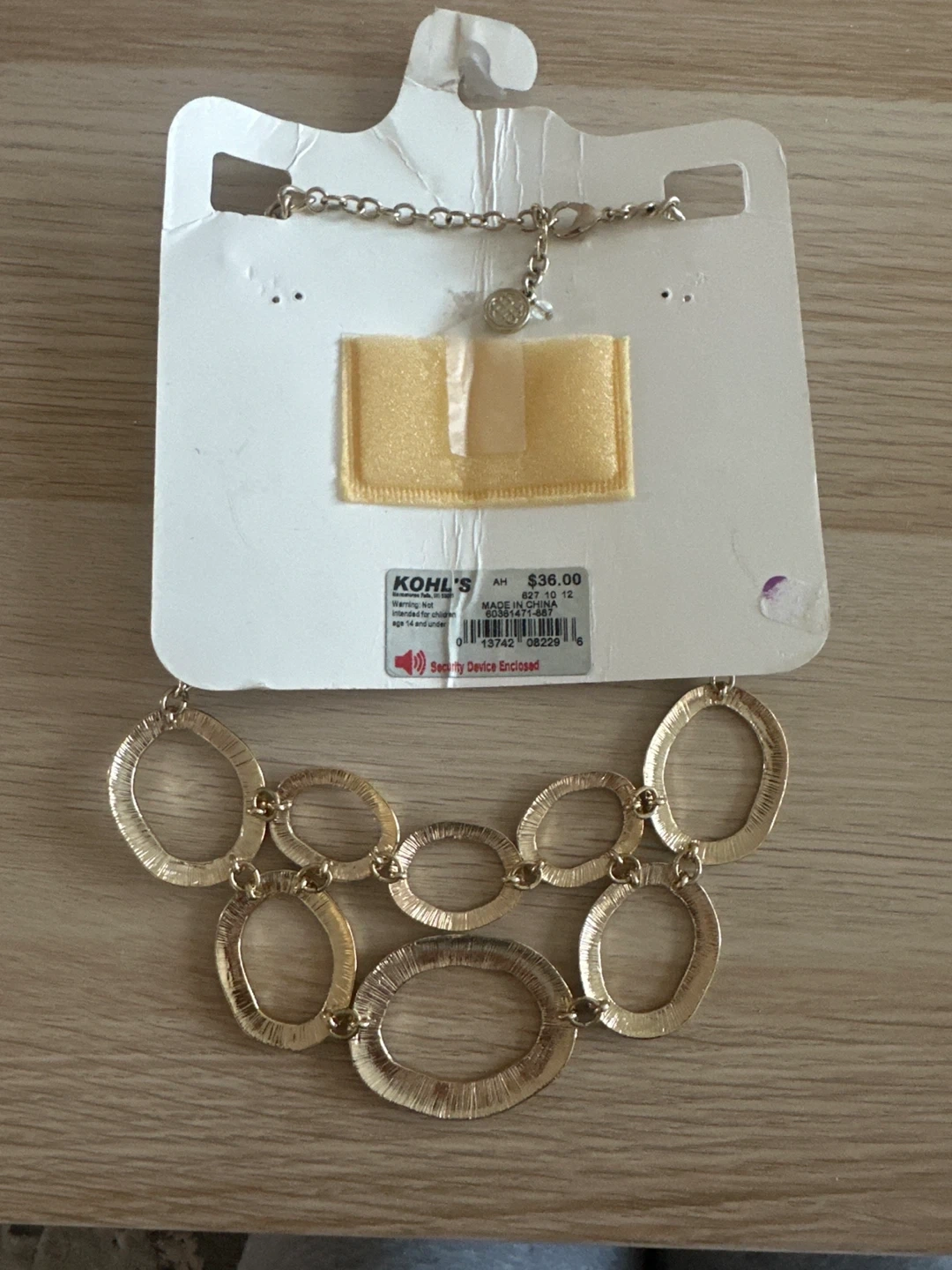 Selling a brand new Dana Buchman gold necklace, still with tags! It has a beautiful design with interconnected oval shapes. Originally bought for $36 at Kohl's, it's in perfect condition and ready to add a touch of elegance to your outfit