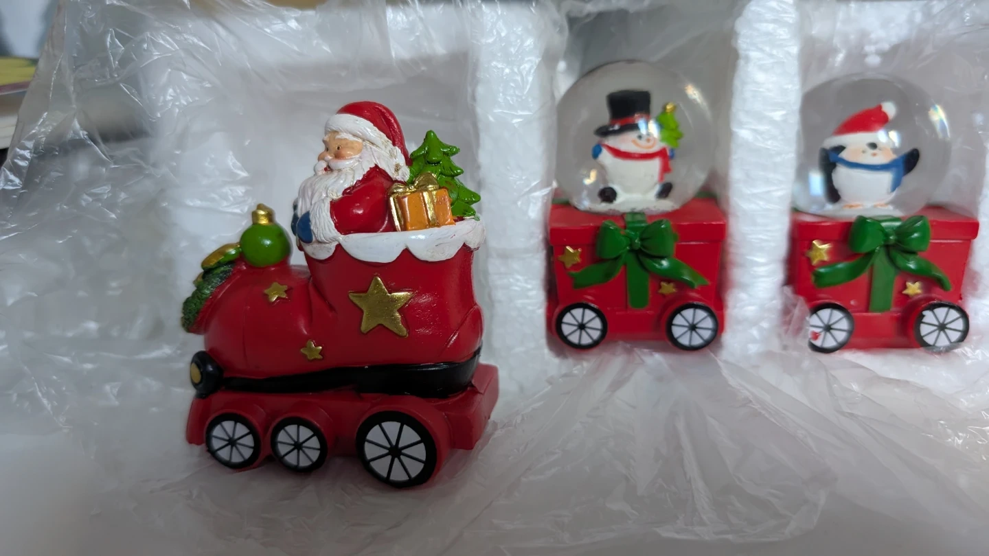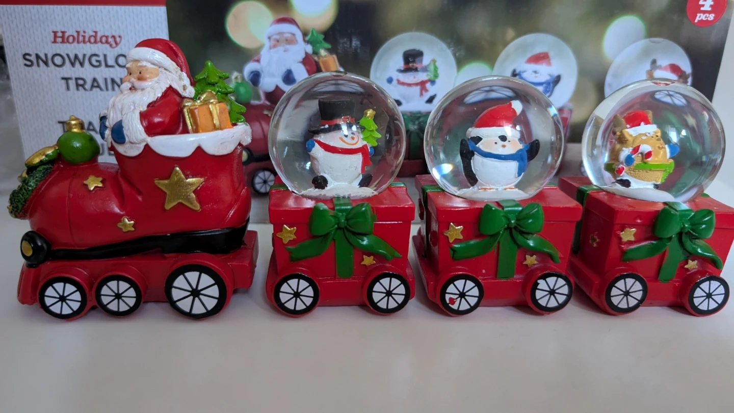 Selling a cute 4-piece holiday snowglobe train set! It's in great condition and comes in the original box. Perfect for adding a festive touch to your holiday decor!