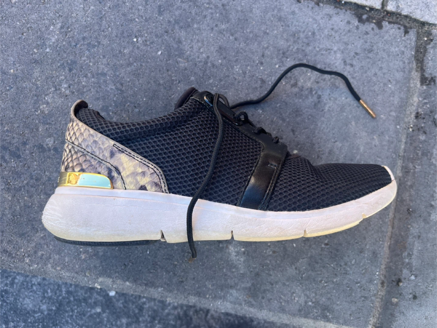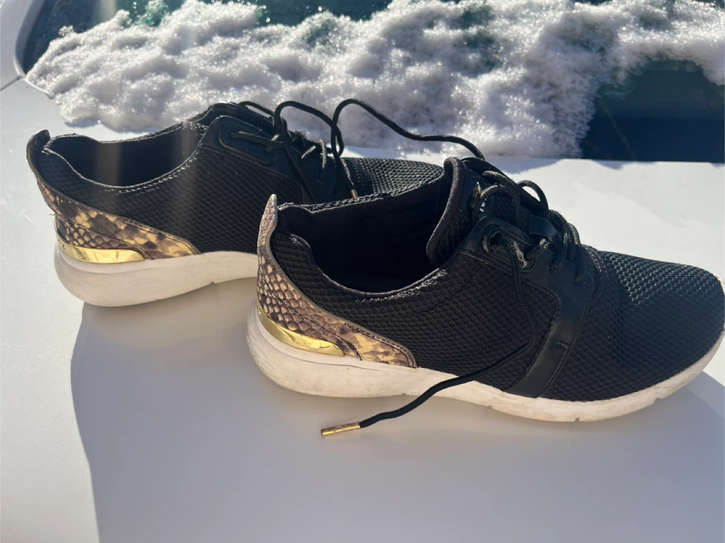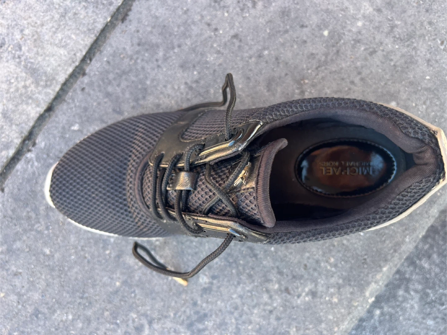 Selling a pair of Michael Kors sneakers in black. They are size 6.5M and made with textile and leather upper with a rubber outsole. Great for everyday wear!
