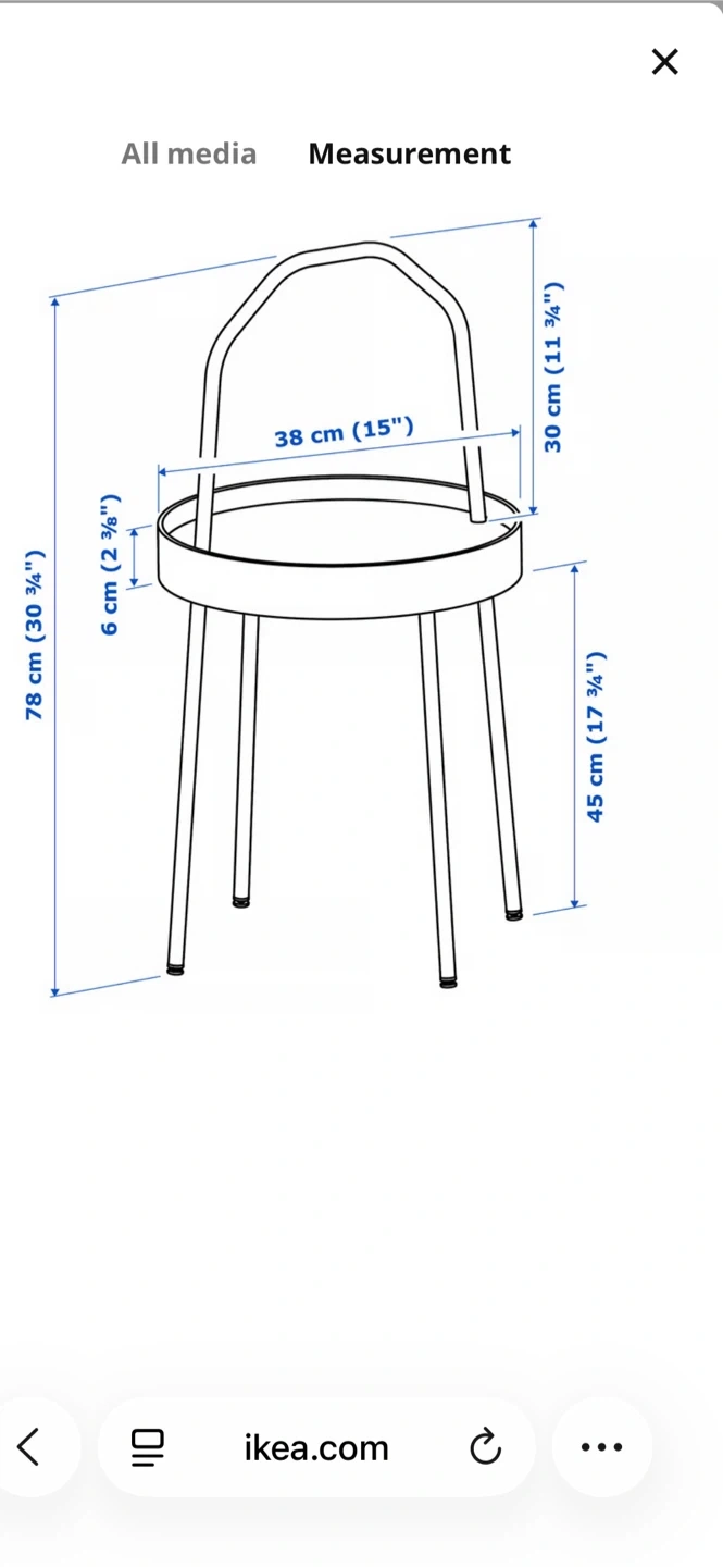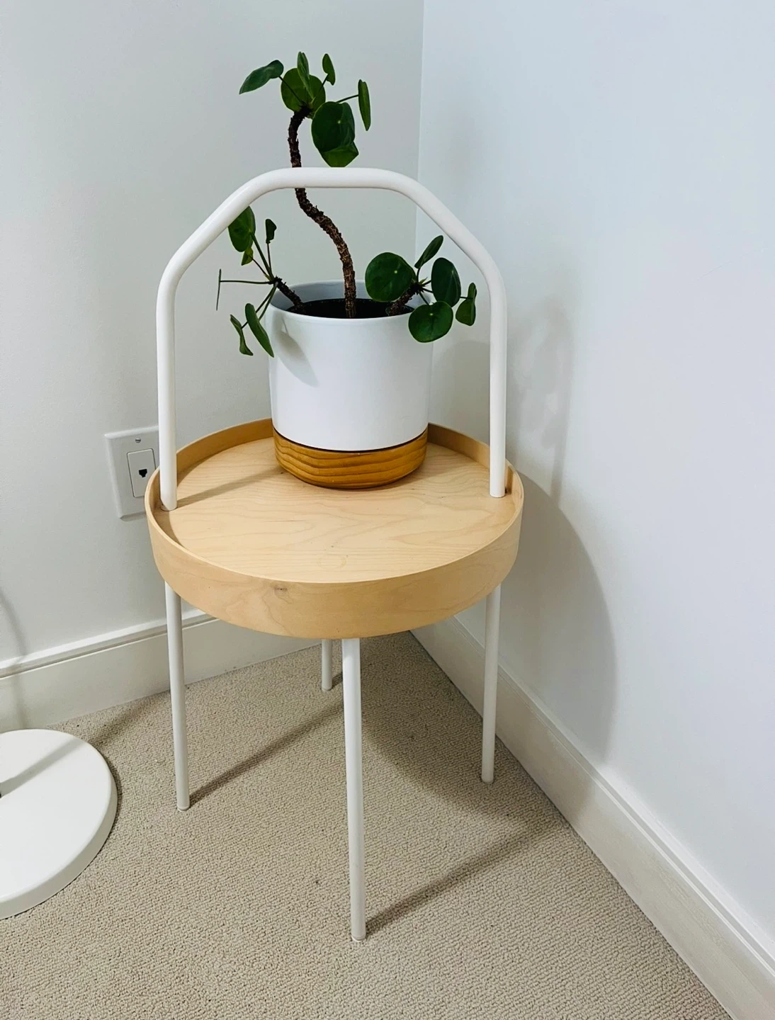 Selling an IKEA Burvik side table in white. It's a handy little table with a handle, making it easy to move around. The top is 38 cm (15 inches) in diameter and the table stands 78 cm (30 3/4 inches) tall. Like new condition, no issues.