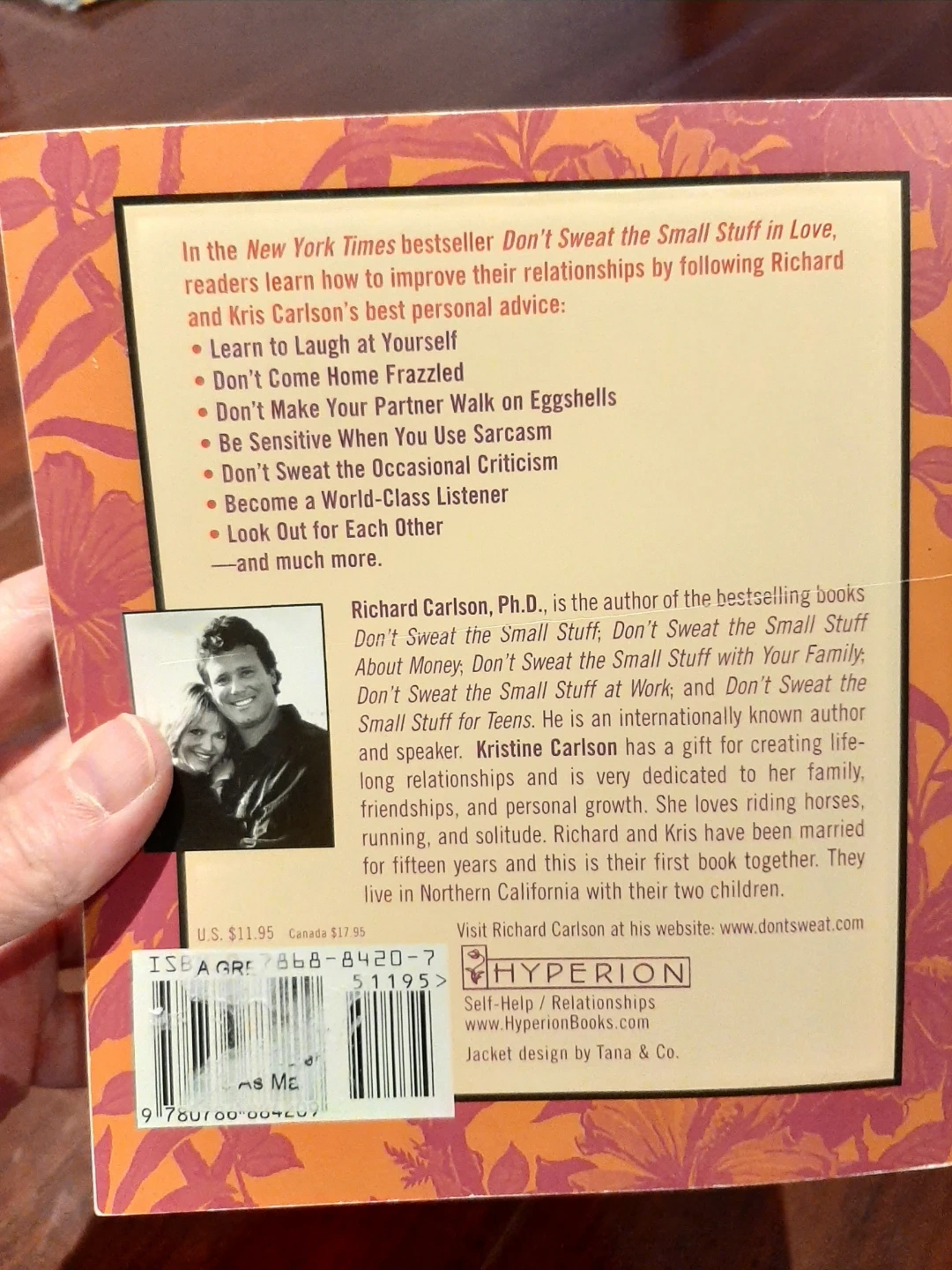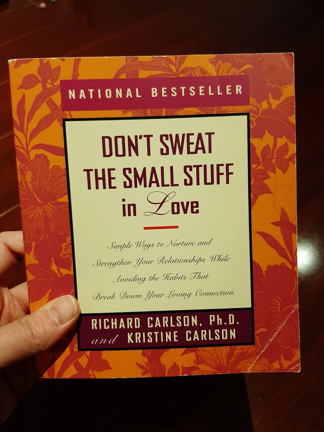 Selling the book 'Don't Sweat the Small Stuff in Love' by Richard Carlson, Ph.D. and Kristine Carlson. This book offers simple ways to nurture and strengthen your relationships while avoiding habits that break down your loving connection. It's a self-help/relationships book.