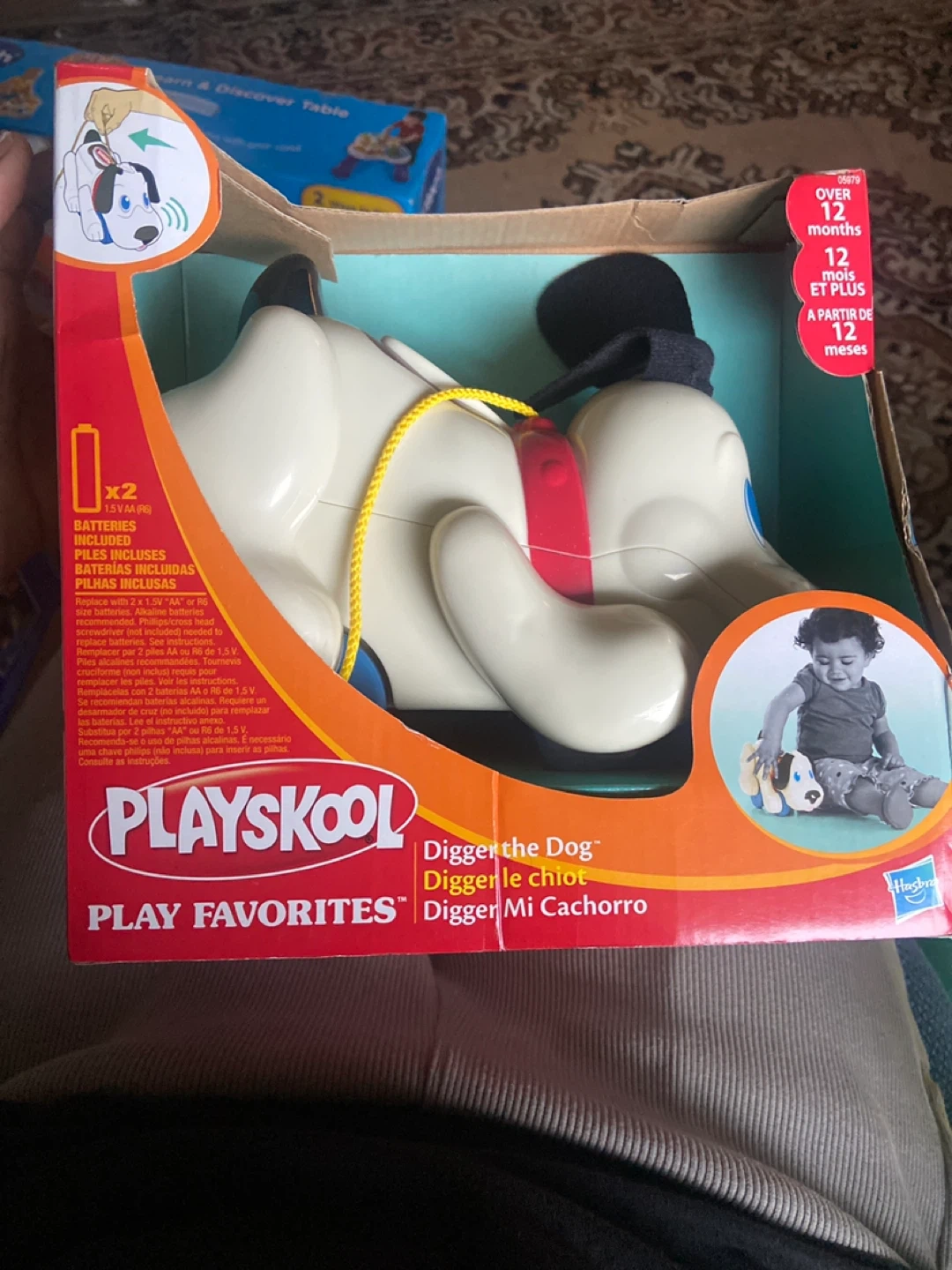 Selling a Playskool Digger the Dog from the Play Favorites line! It's suitable for ages 12 months and up. Batteries are included, so it's ready to play right away. Comes in the original box