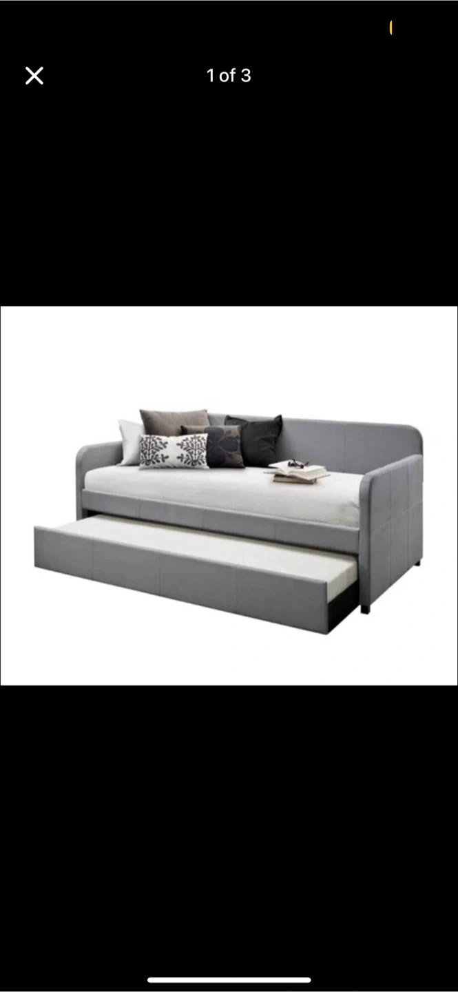 Selling a twin size daybed with a trundle, perfect for extra sleeping space! It's in good condition and ready for a new home. The daybed is a stylish grey colour that will fit in with any decor. Great for guests or a kid's room! Already taken down