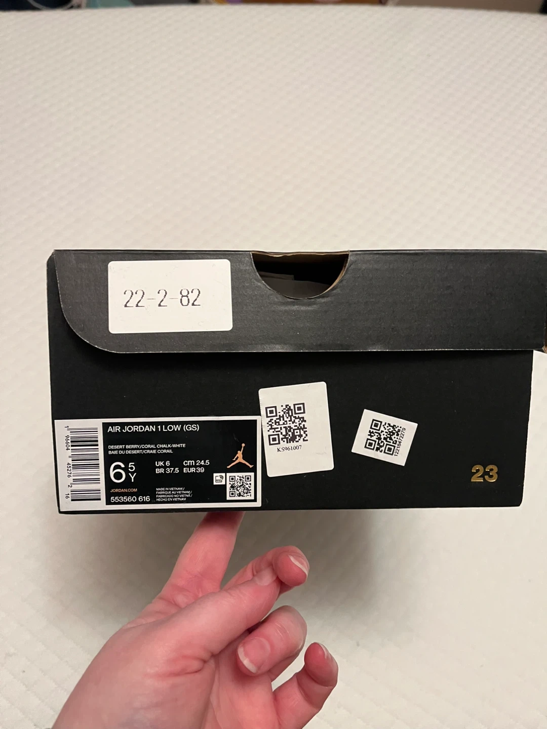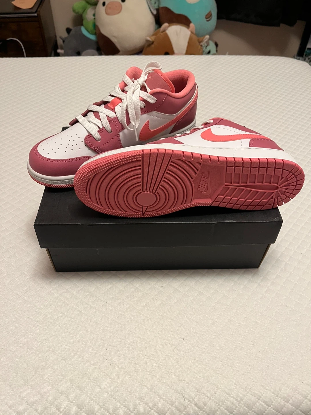 Selling a pair of brand new, never worn Nike Air Jordan 1 Low (GS) in a lovely pink and white colourway., with a bright orange swoosh. These are a youth size 6.5Y / Women’s 8. The box is included if you want it.