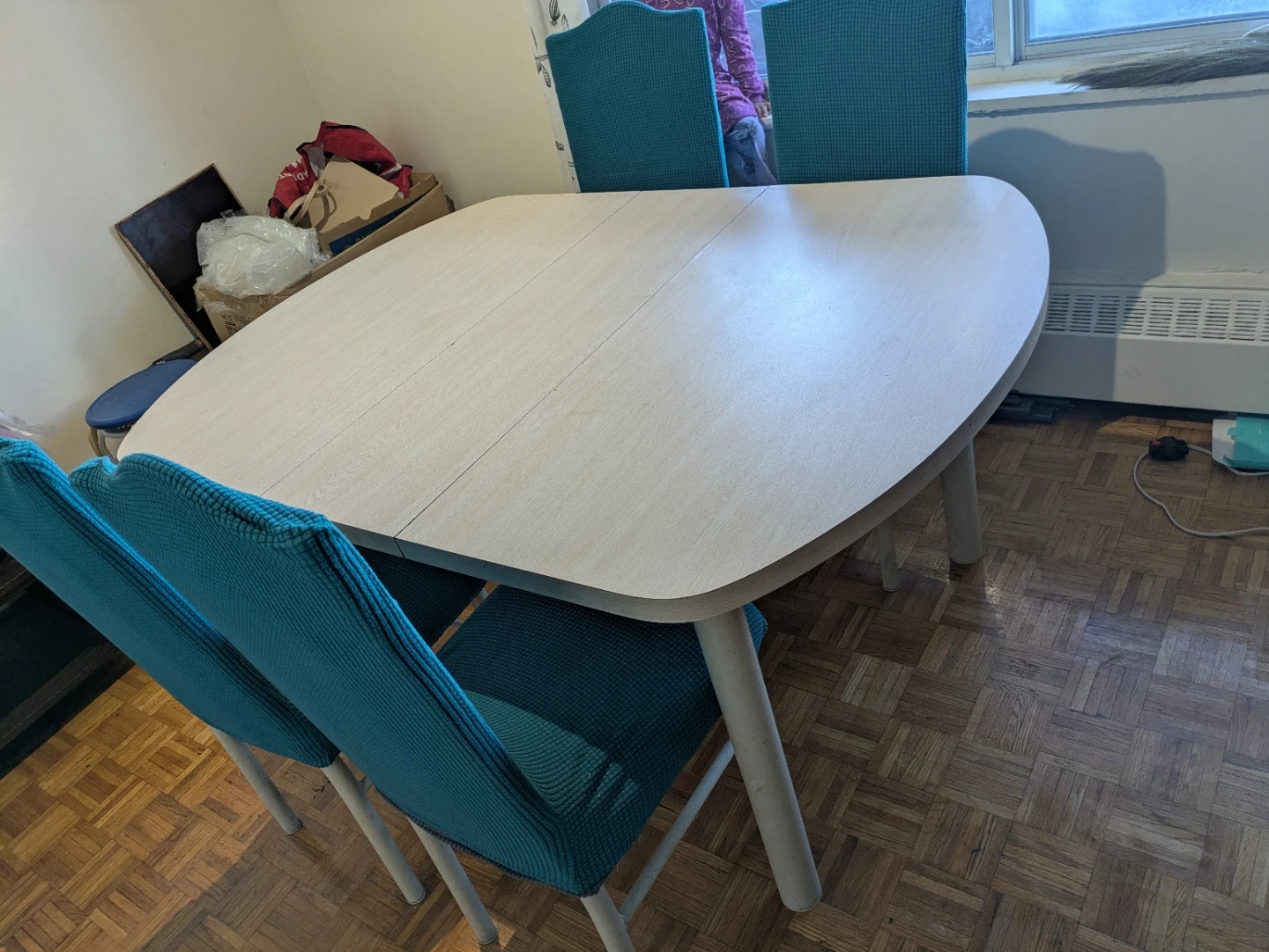 Dining Table with 4 Teal Chairs
