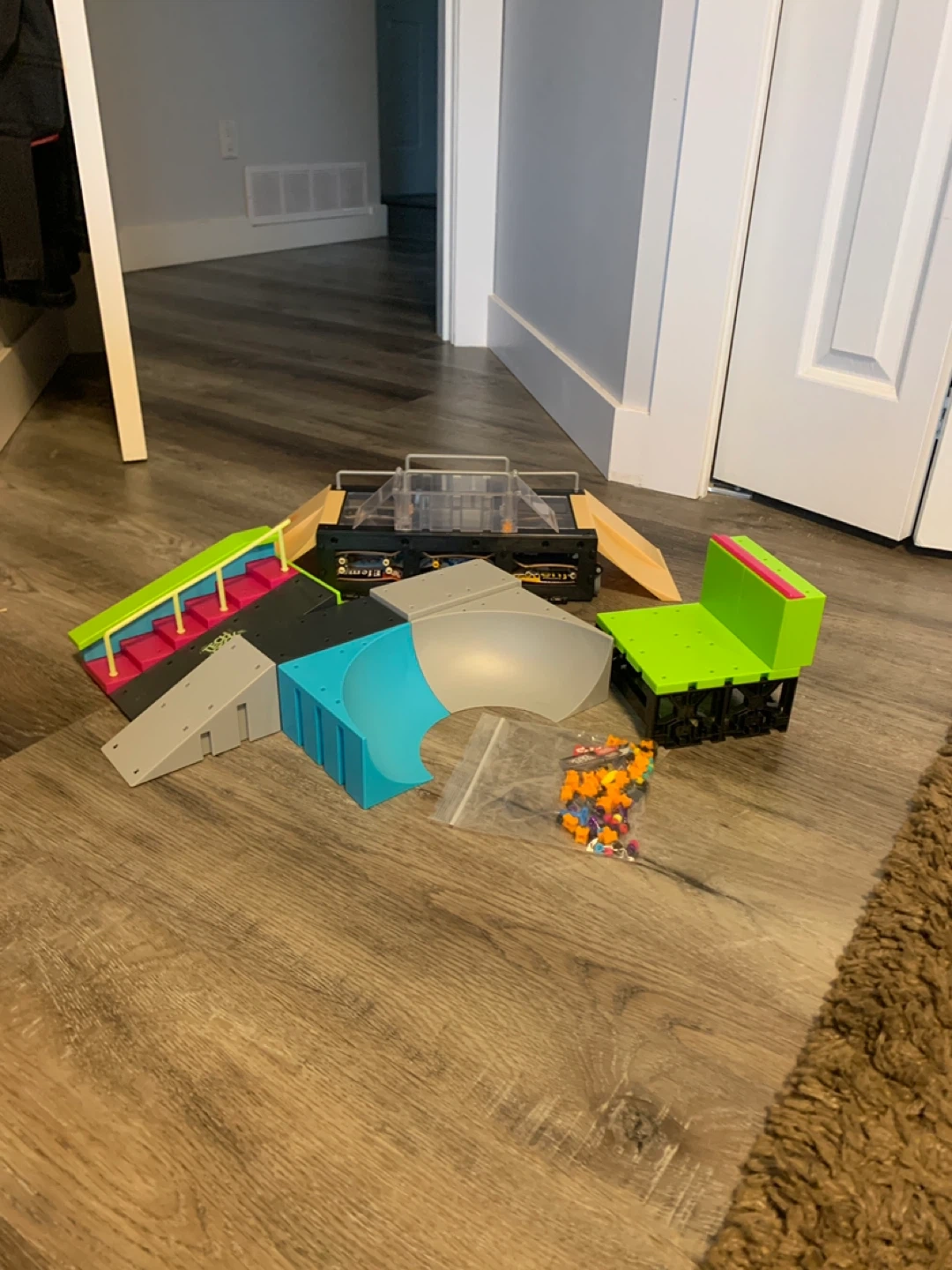 Selling a collection of Tech Deck fingerboards and a skatepark setup! Includes a variety of boards with different designs and brands like Element and Flip. The skatepark has ramps, rails, and other obstacles for performing tricks. Also includes a bag of extra parts and accessories!