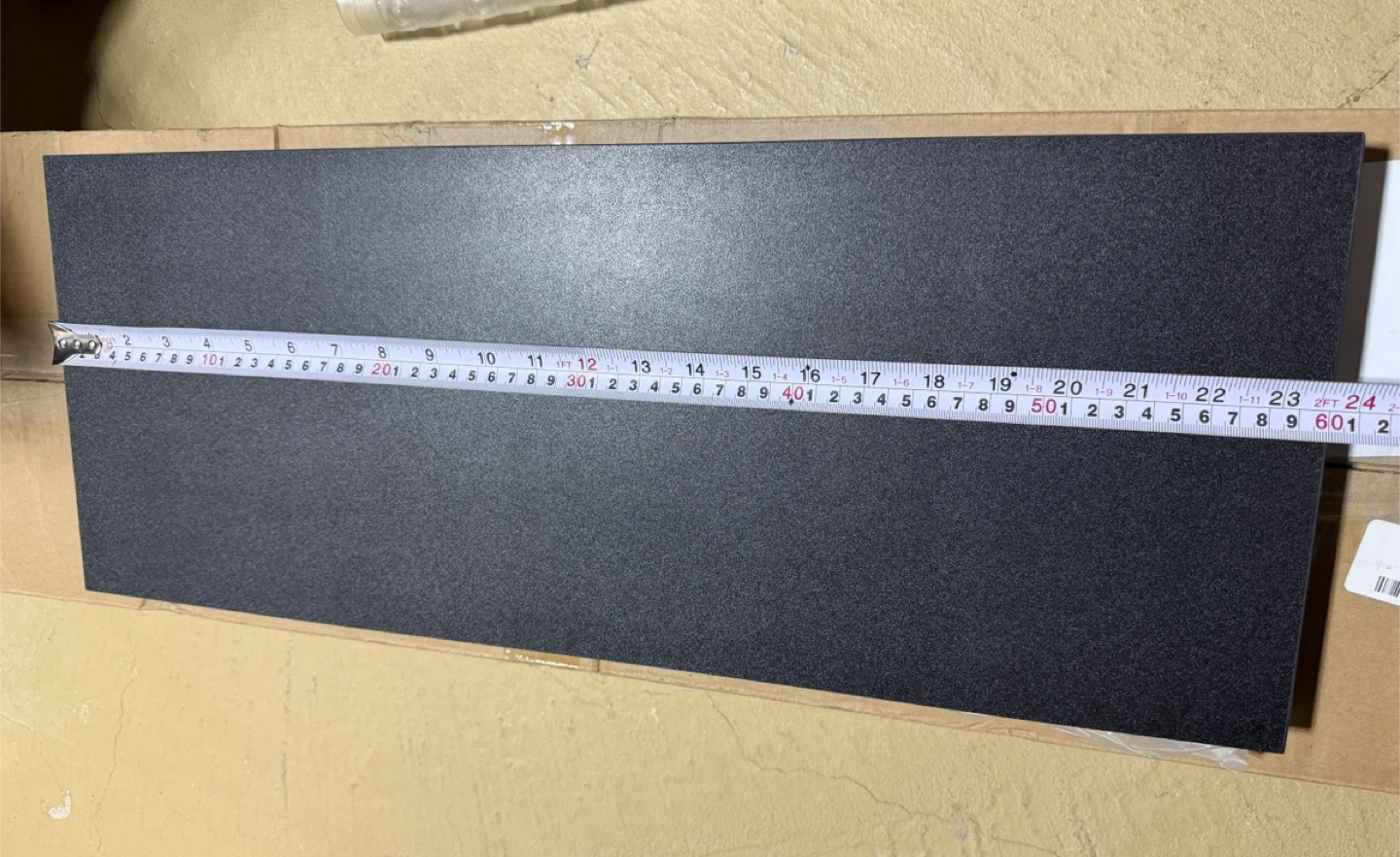It comes with all the components and the box. The shelf is about 24 inches long.