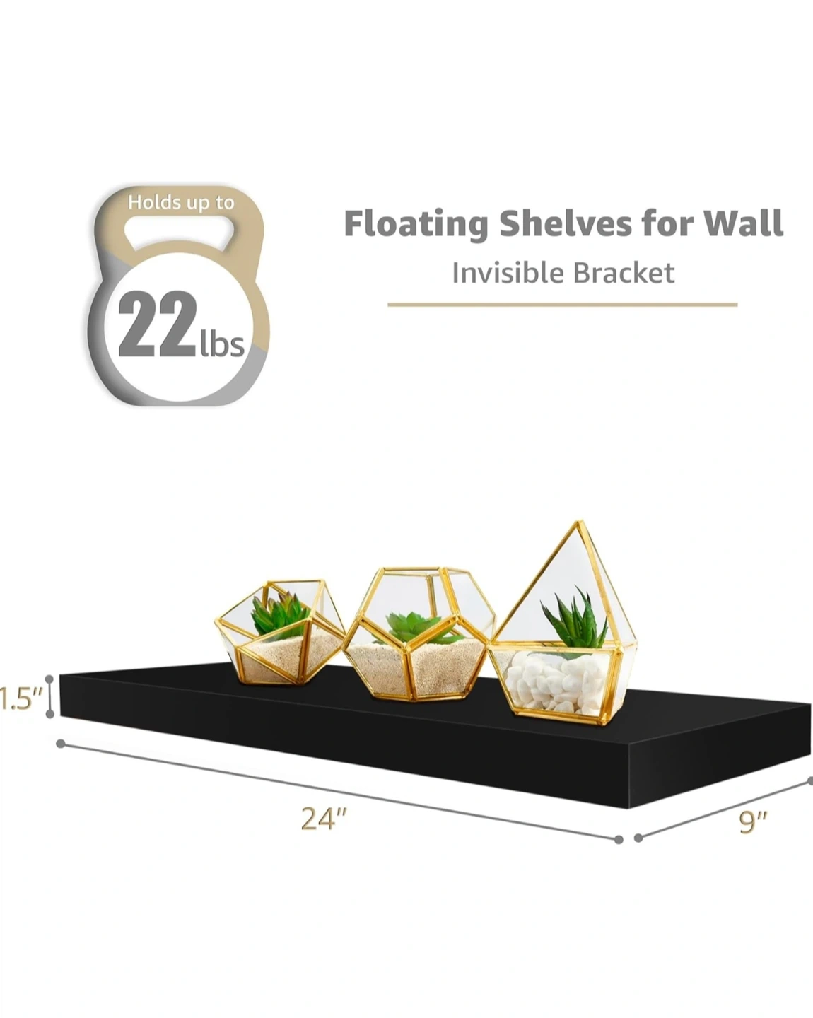 Serbus Floating Wall Shelf Set of 2- Black, 24 inch
