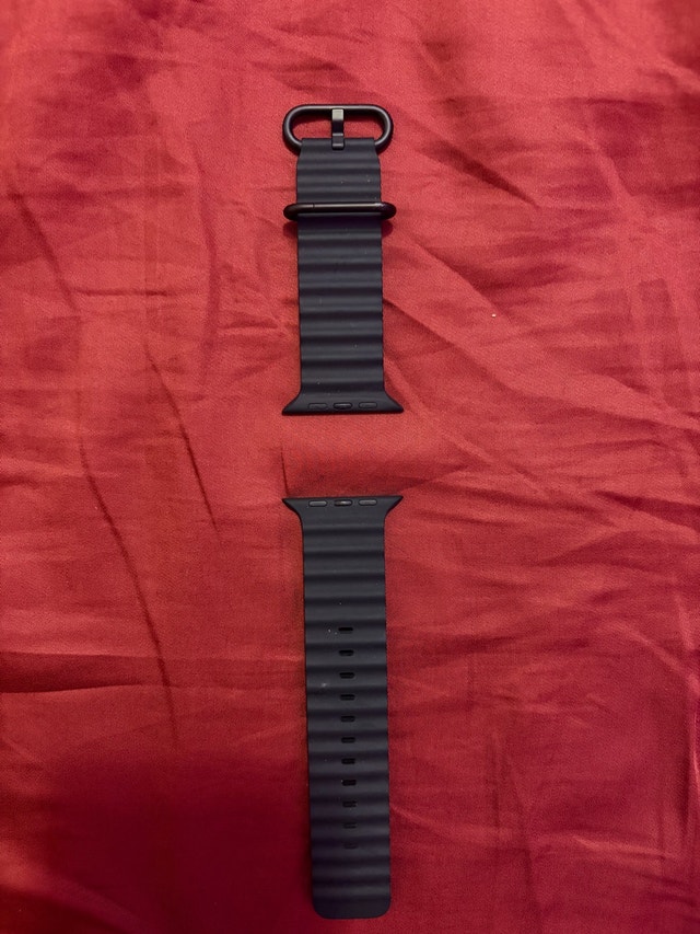 Selling a Apple Watch Ocean Band, designed for the Apple Watch Ultra but compatible with other Apple Watch models. This rugged and stylish band is perfect for anyone who loves outdoor adventures or wants a unique look. Key features include: * Durable fluoroelastomer material * Corrosion-resistant titanium buckle * Adjustable fit for various wrist sizes * Unique tubular geometry for a secure fit . Just a heads up - if the ad's still up, the band's still available!