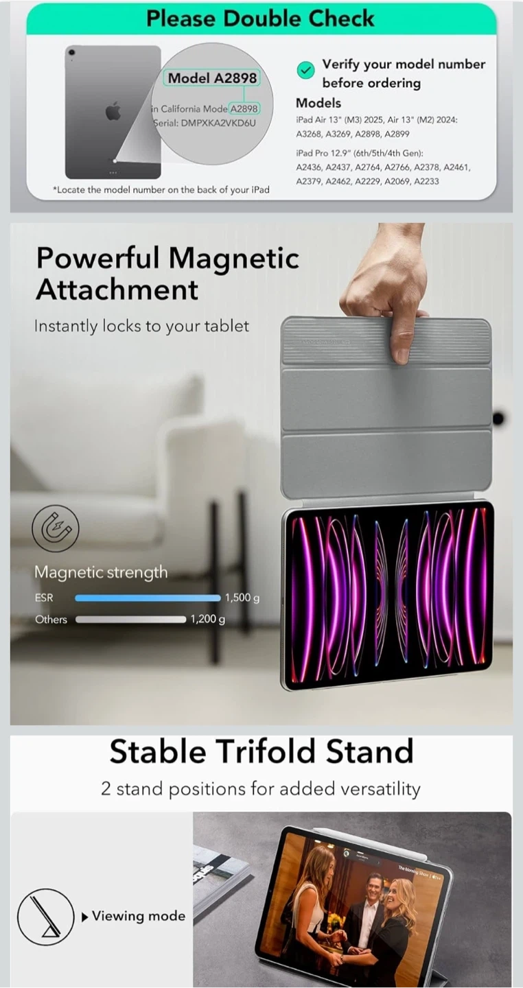 I have a brand new ESR Protective Tablet Case for the iPad Air 13" (M3/M2) or iPad Pro 12.9" (6th/5th/4th Gen)! It's in grey and features a slim trifold stand case with support for the Pencil Pro and Pencil (USB-C). It's designed for more protection with durable materials and air-guard corners.