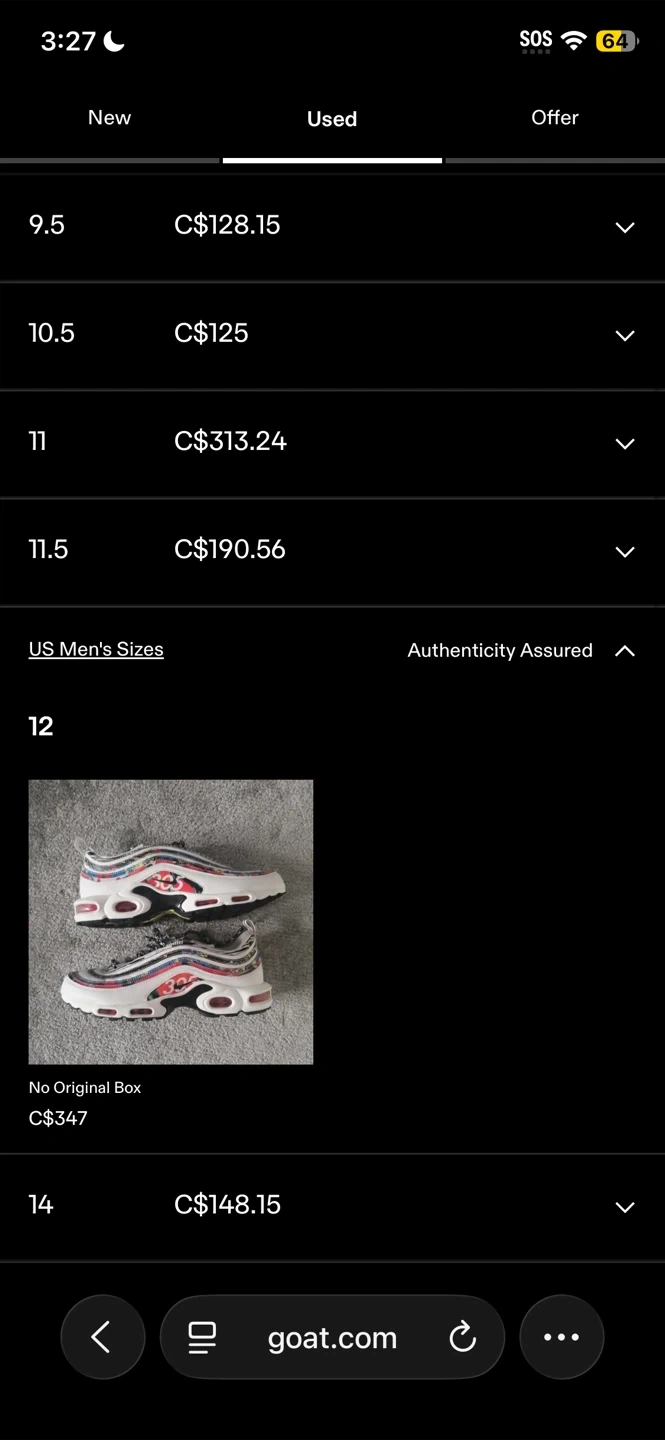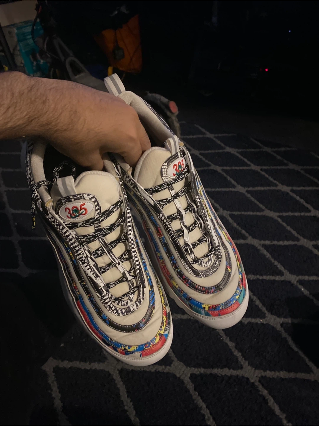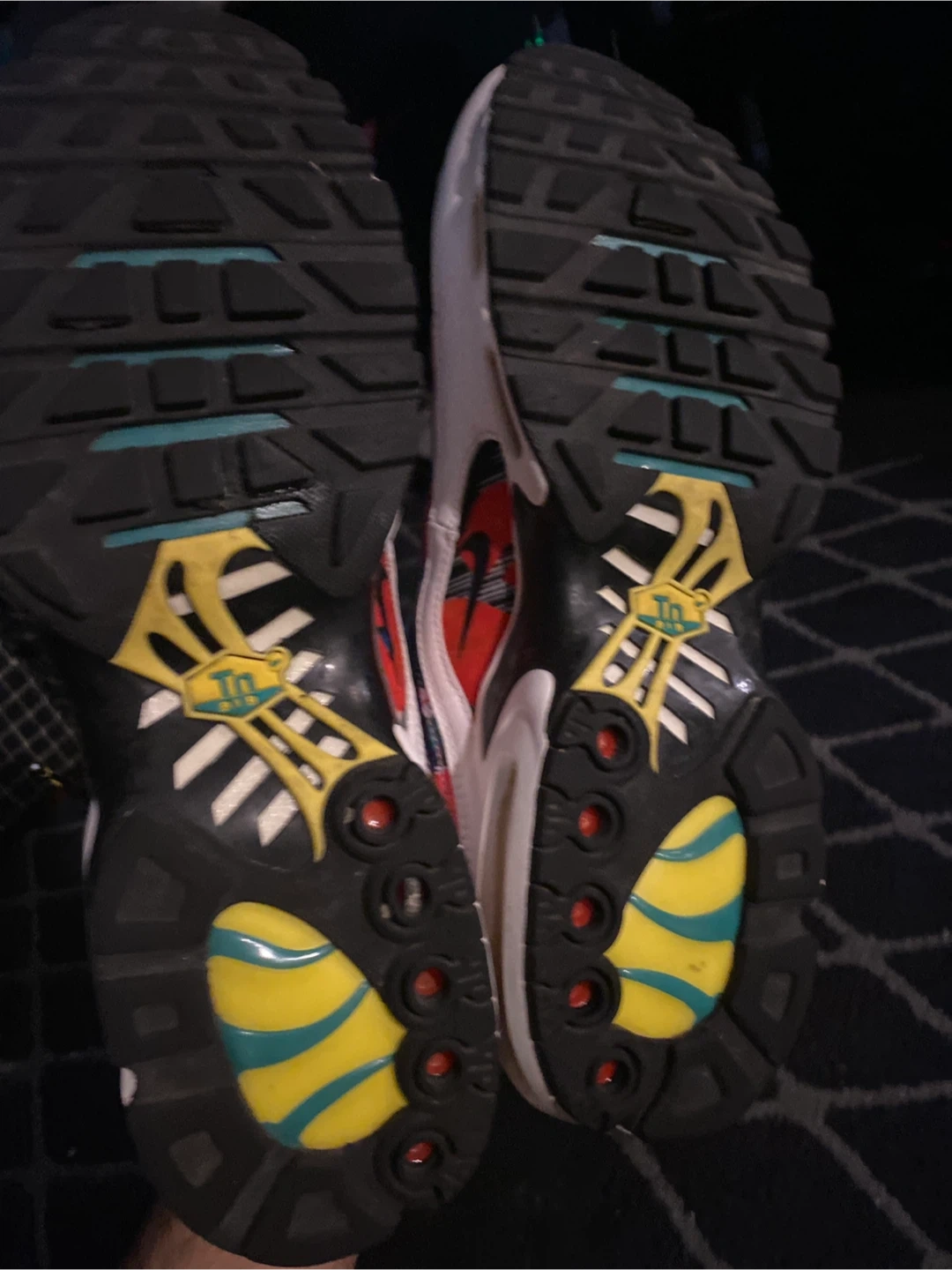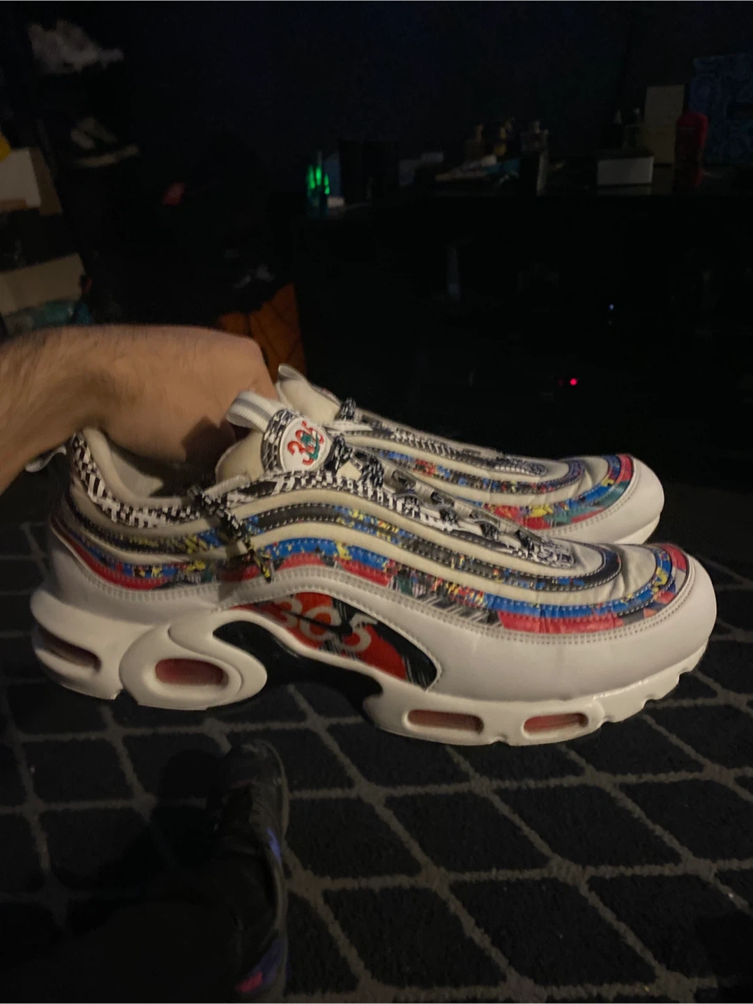 Selling a pair of Nike Air Max Plus 97 City Pride in size 12. These shoes have a unique design and are in used condition as shown in the photos.