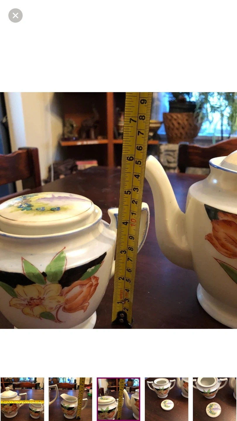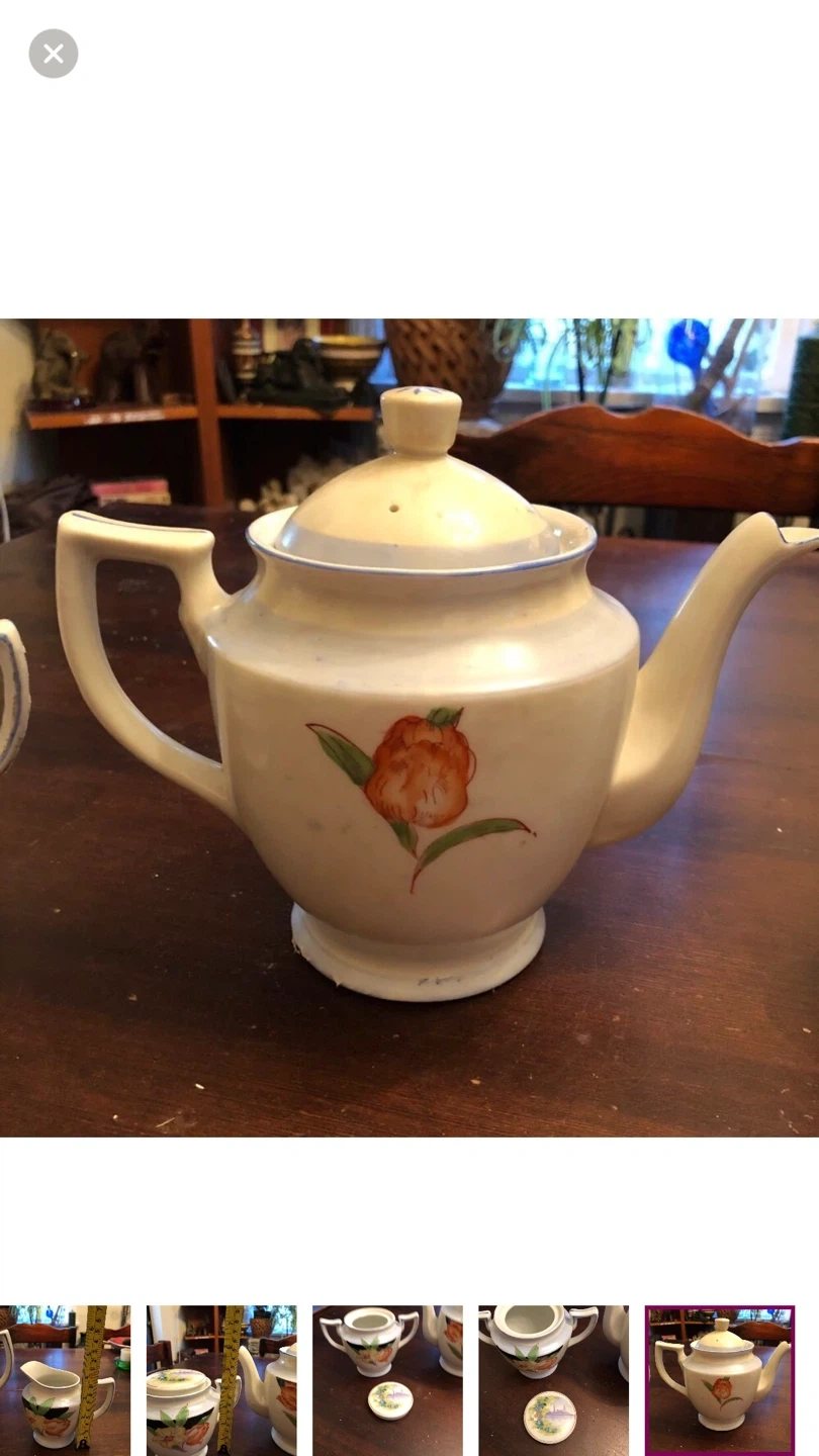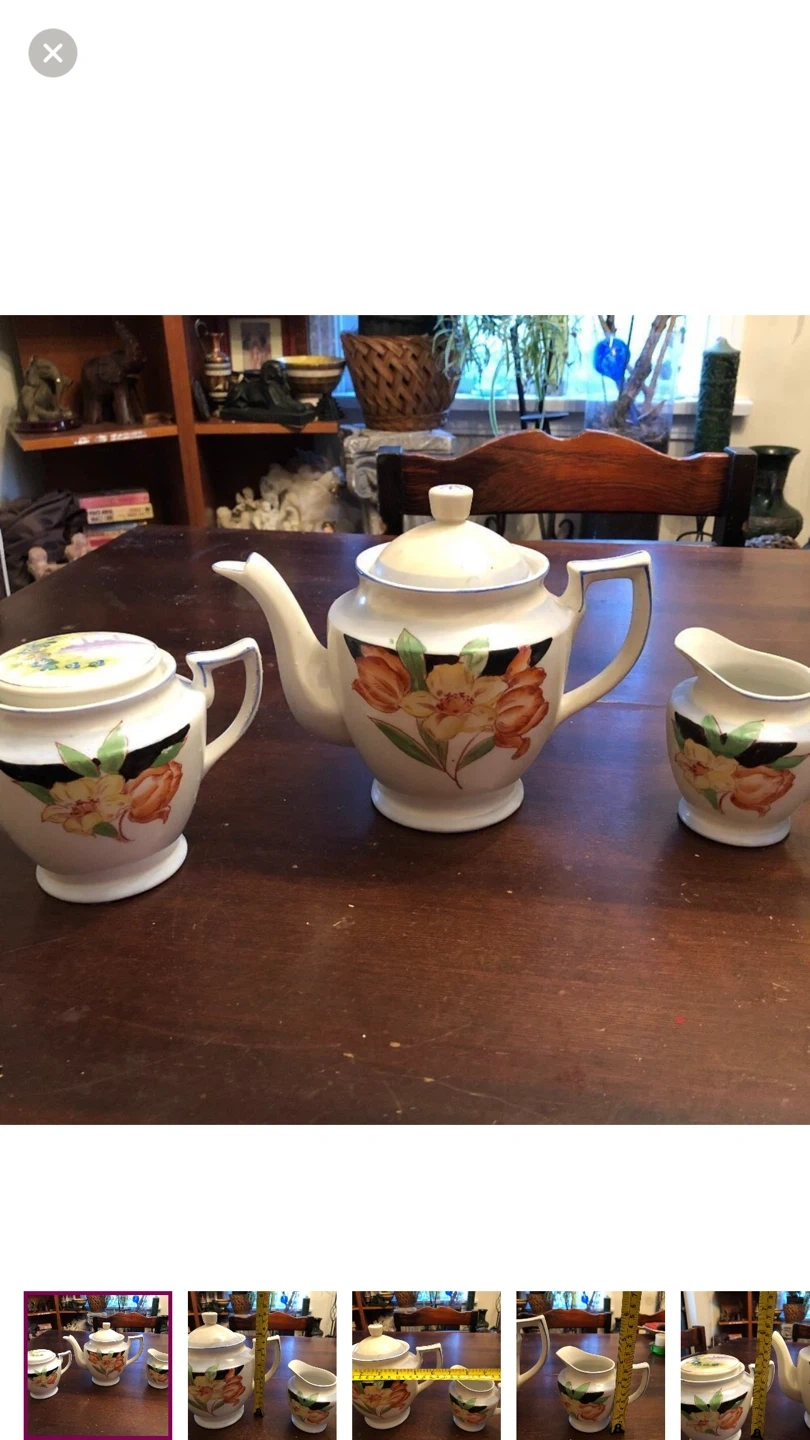 Comes with teapot, sugar bowl, creamer.