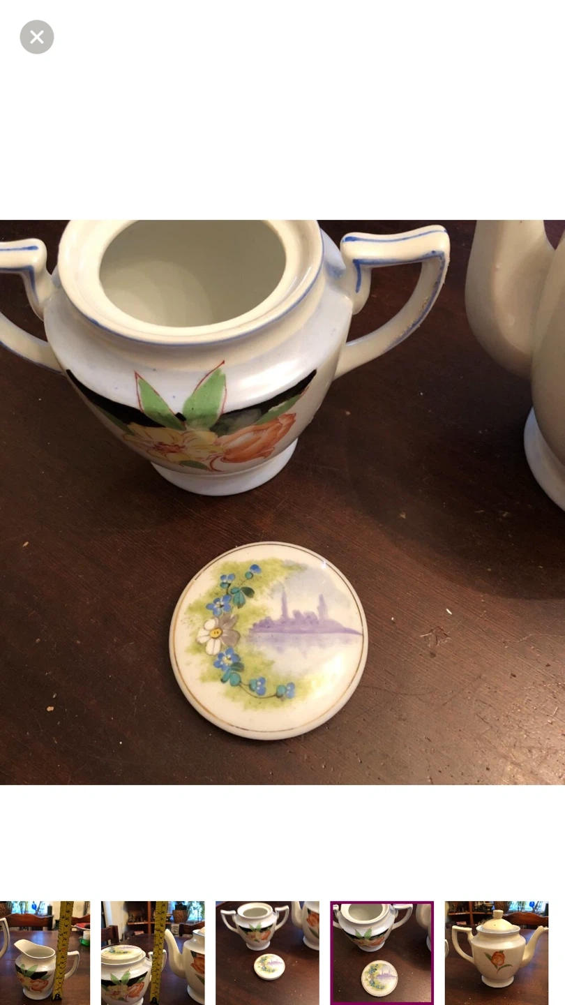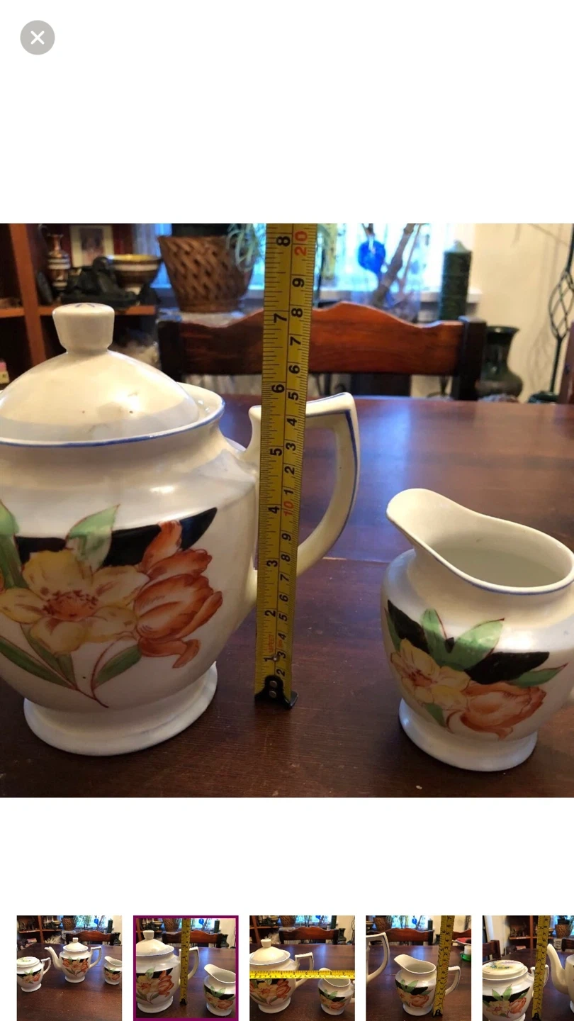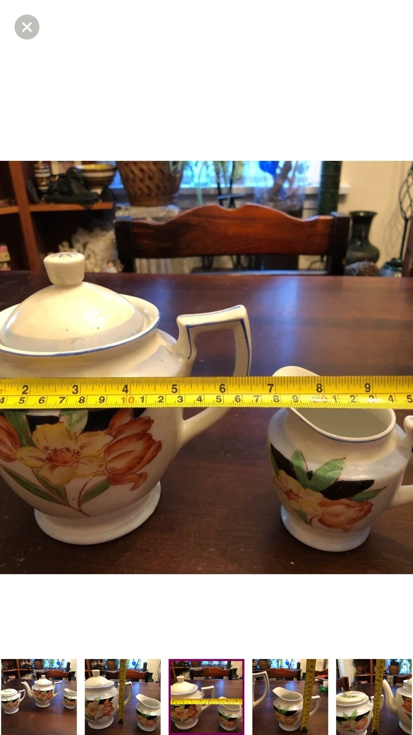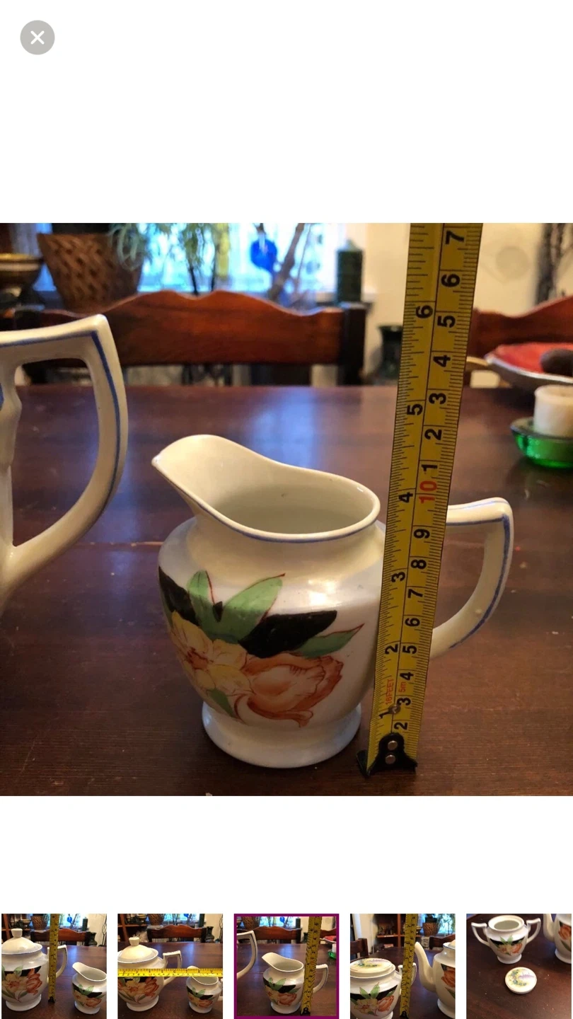 Comes with teapot, sugar bowl, creamer.