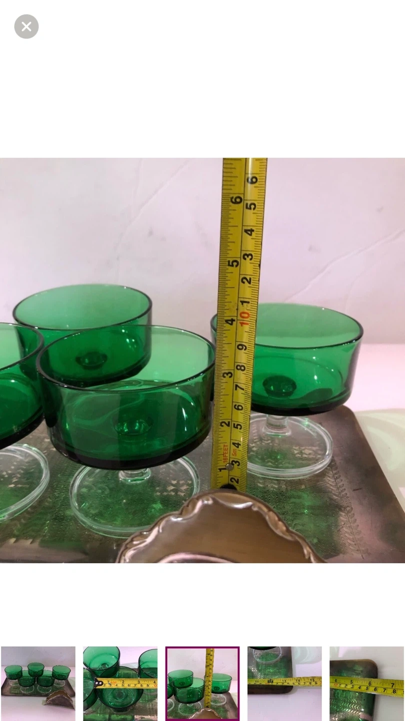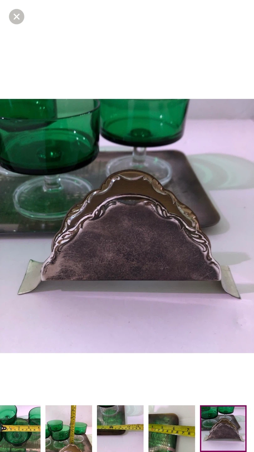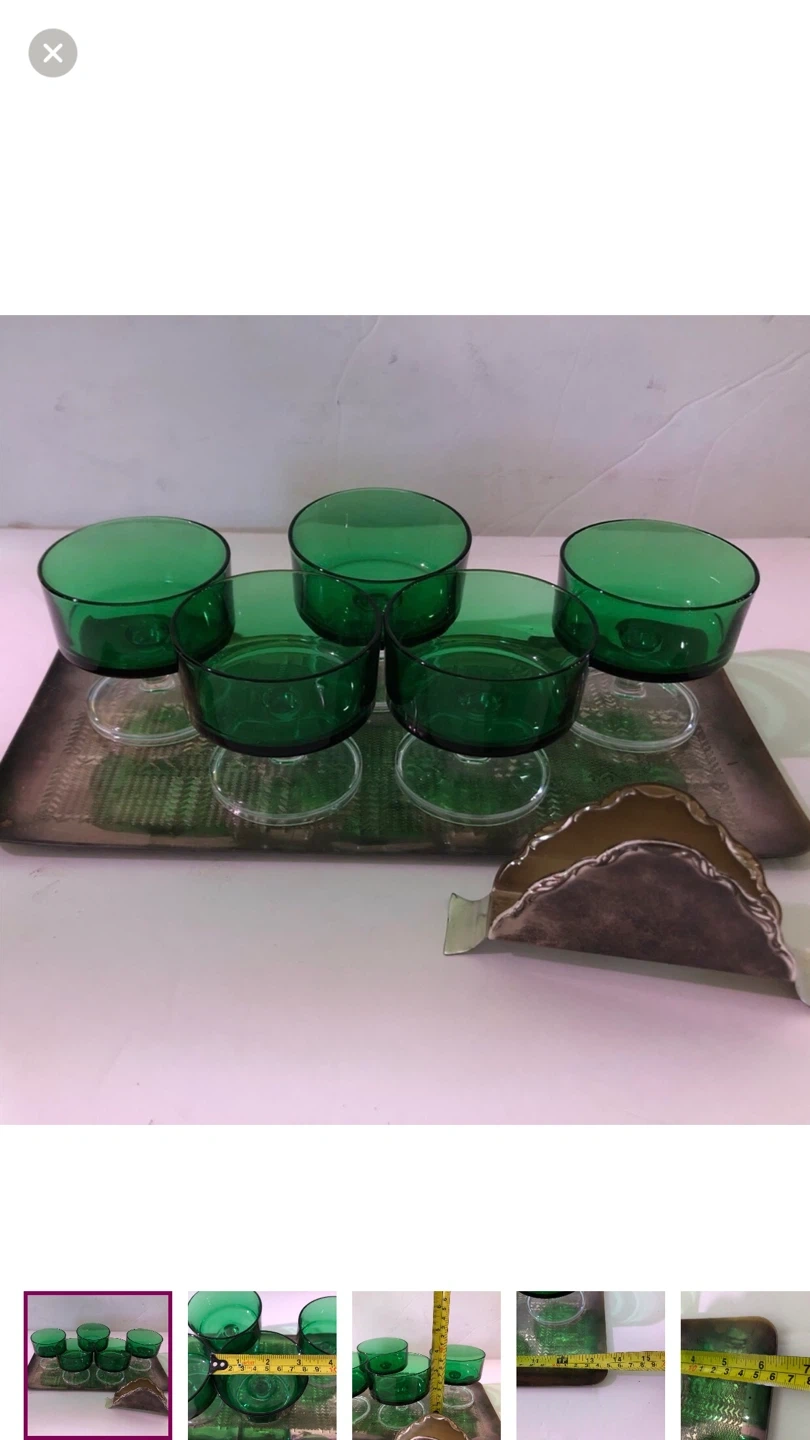 Vintage Green Glasses with Silver Tray and Napkin Holder.