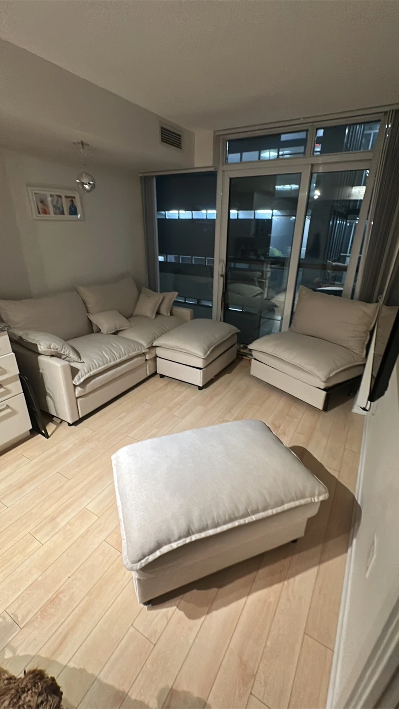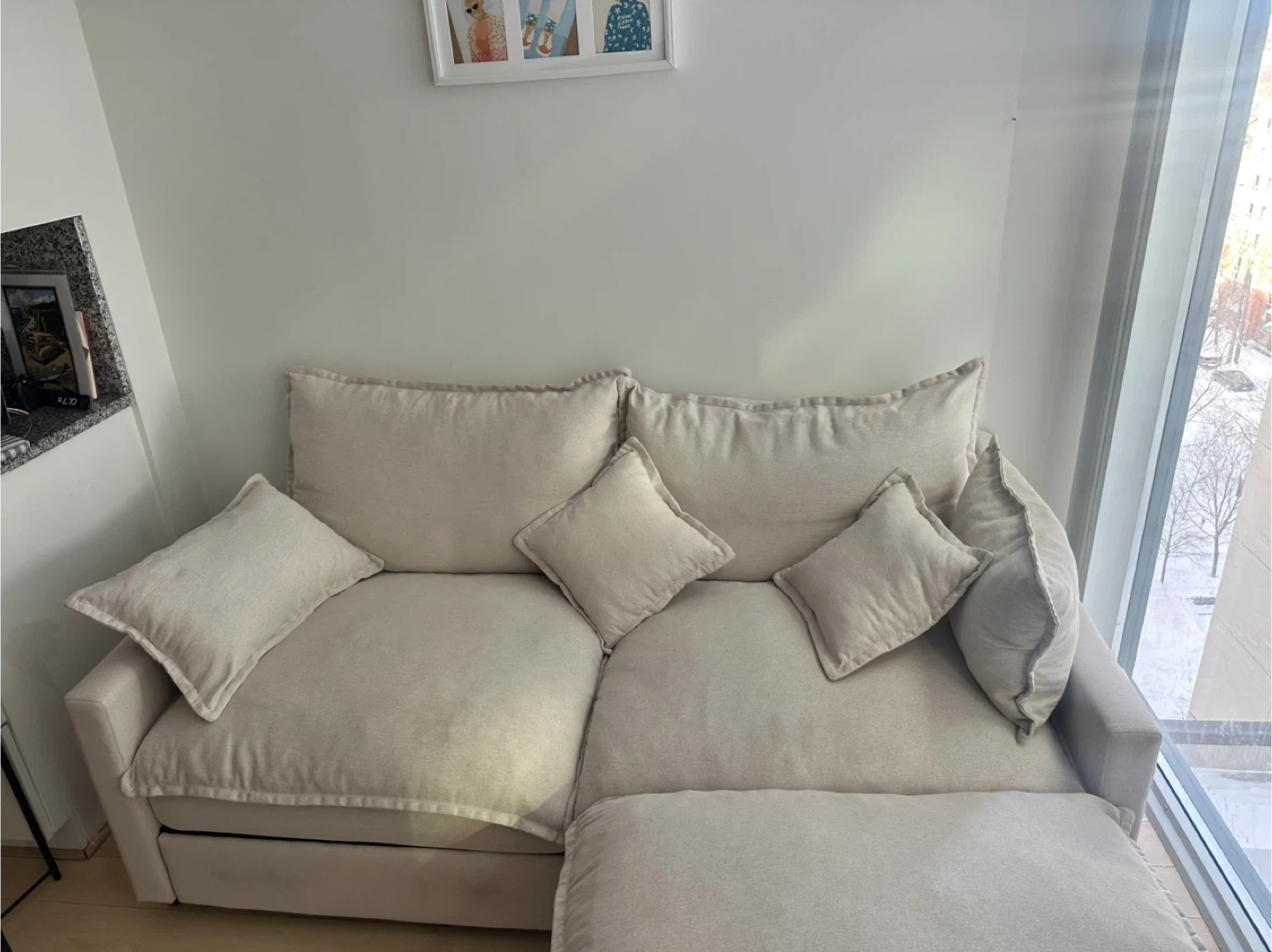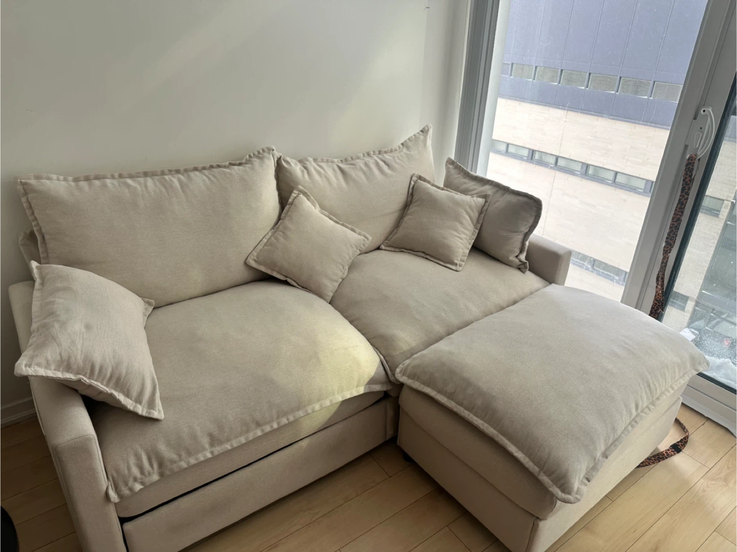 I bought it a few weeks ago. ($1000) It’s in great condition, but I changed my mind. I can return it because of the color, but I wanted to try my luck by posting it here first, as I don’t really want to deal with returning and packaging. It’s incredibly comfortable. It was originally a three-seater; I’m using it as a two-seater. I removed the middle section, but it can be put back if you like.