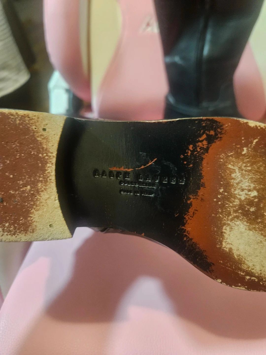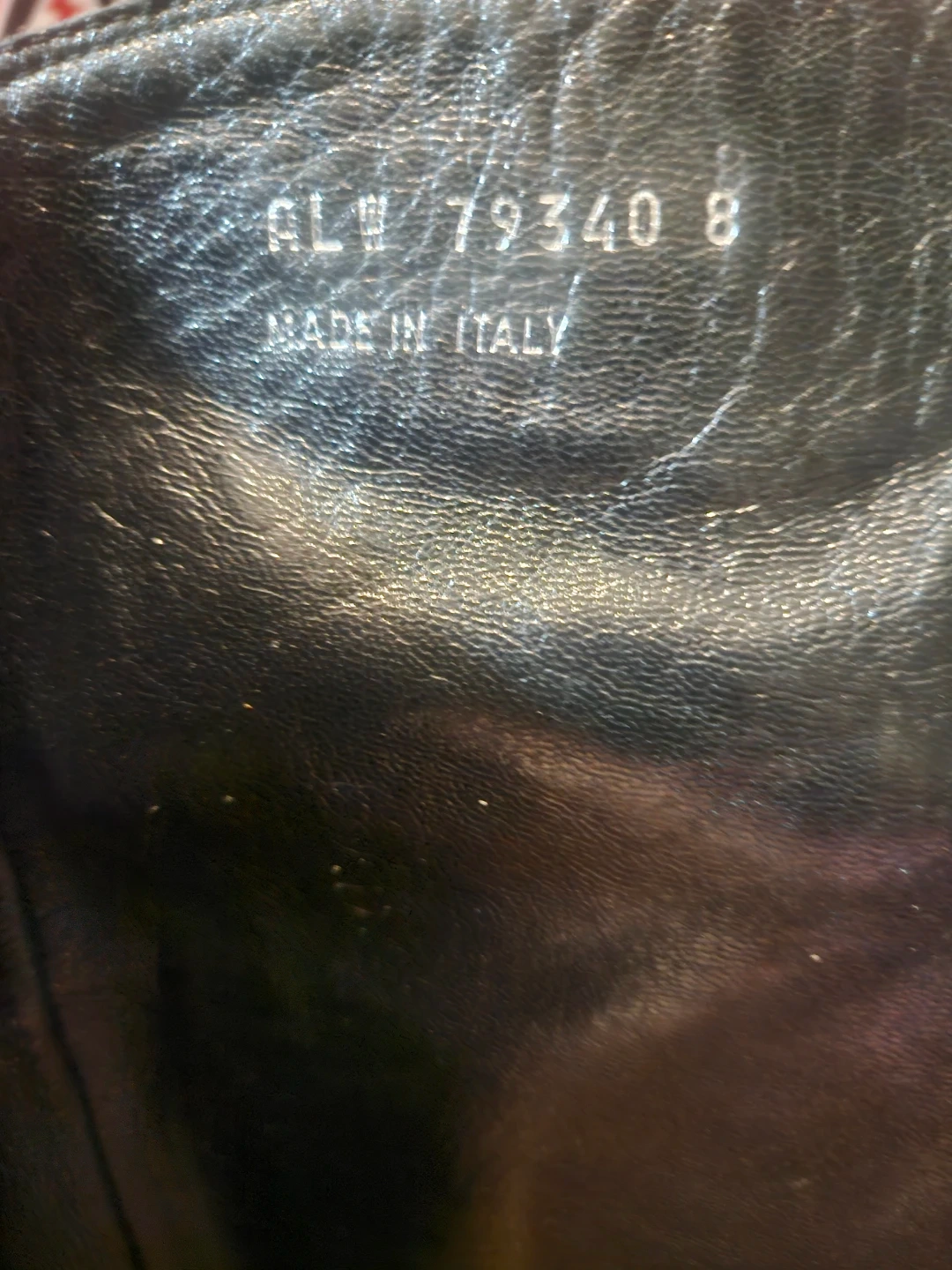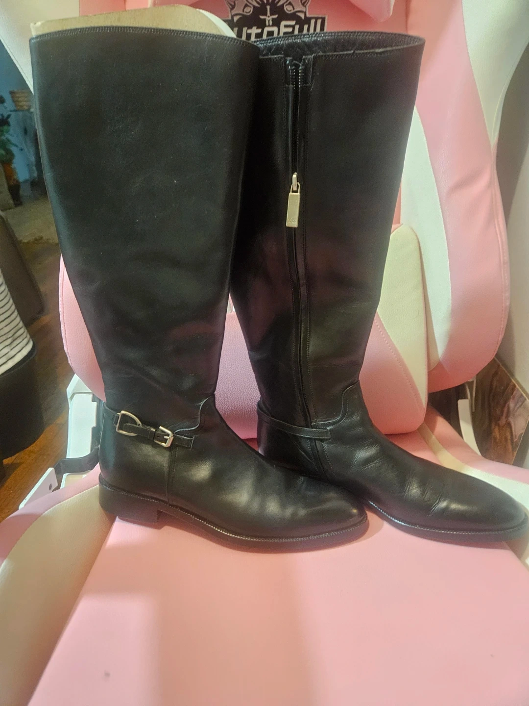Selling a pair of Ralph Lauren knee-high leather boots in black. They are a size 8 and have a zipper detail. These boots are made in Italy size 8