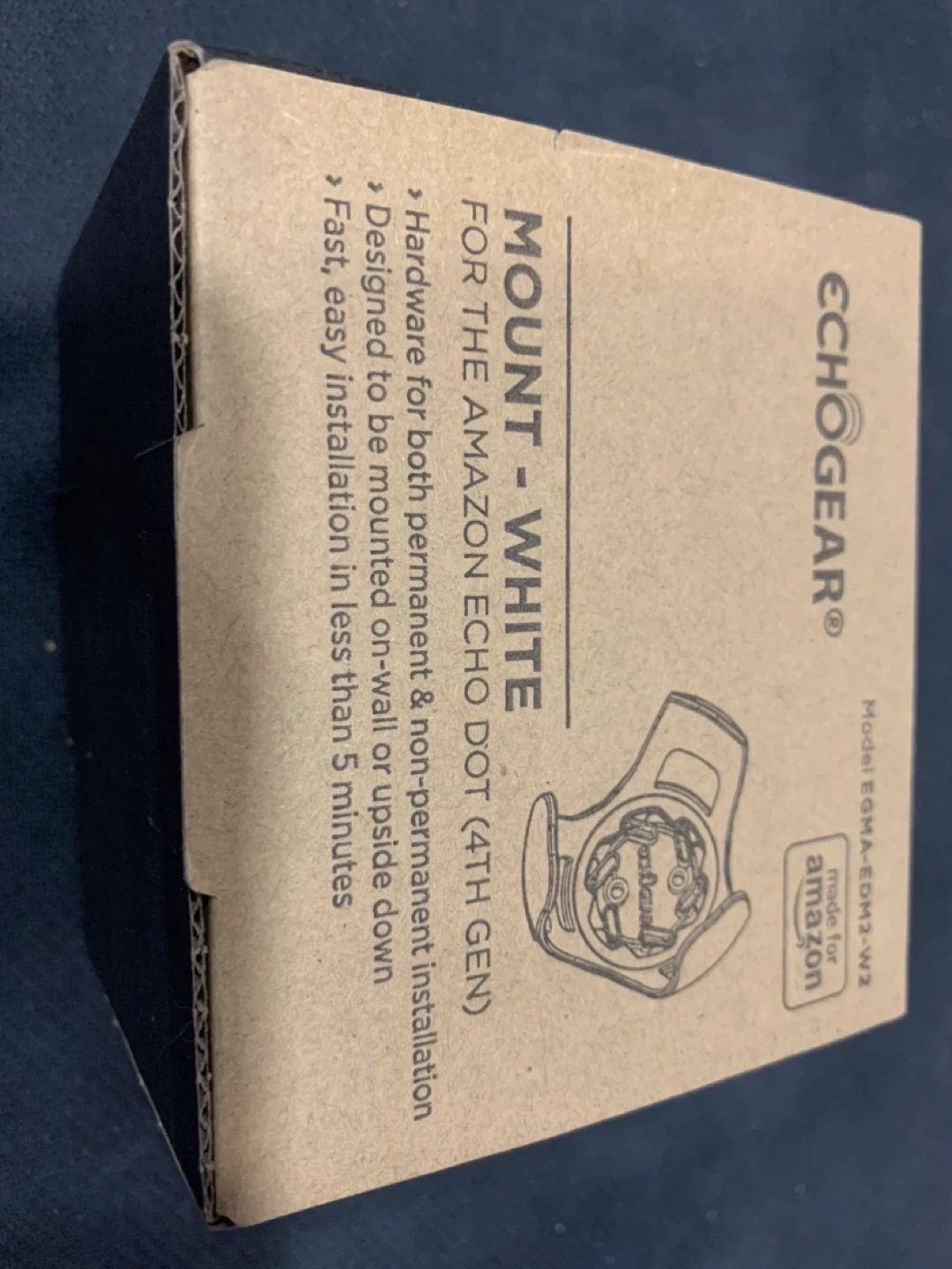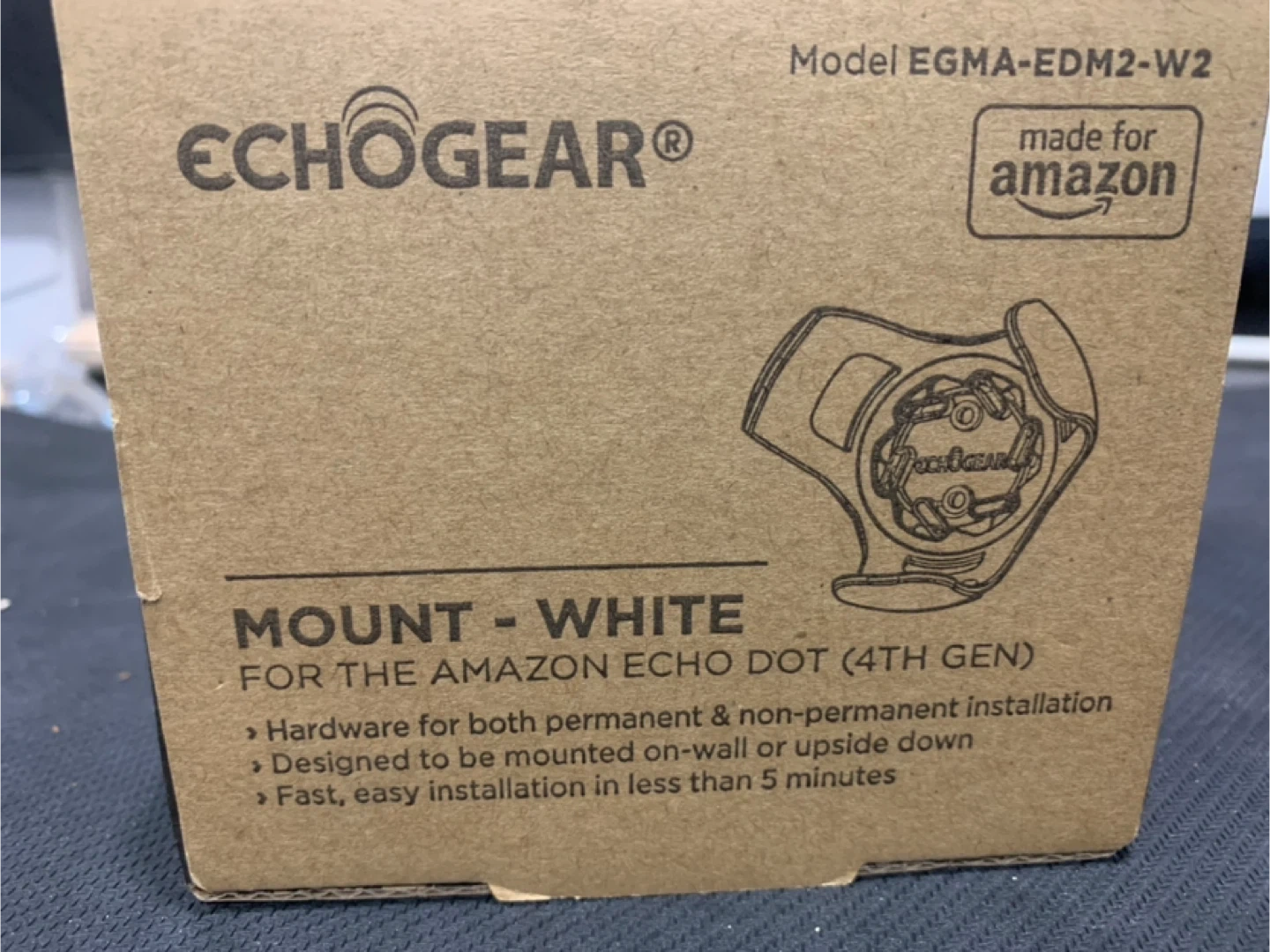 This is a brand new ECHOGEAR mount for the Amazon Echo Dot (4th Gen) in white! It's hardware for both permanent and non-permanent installation, and is designed to be mounted on-wall or upside down. It allows for fast, easy installation in less than 5 minutes. It's compatible with the Amazon Echo Dot (4th Gen).