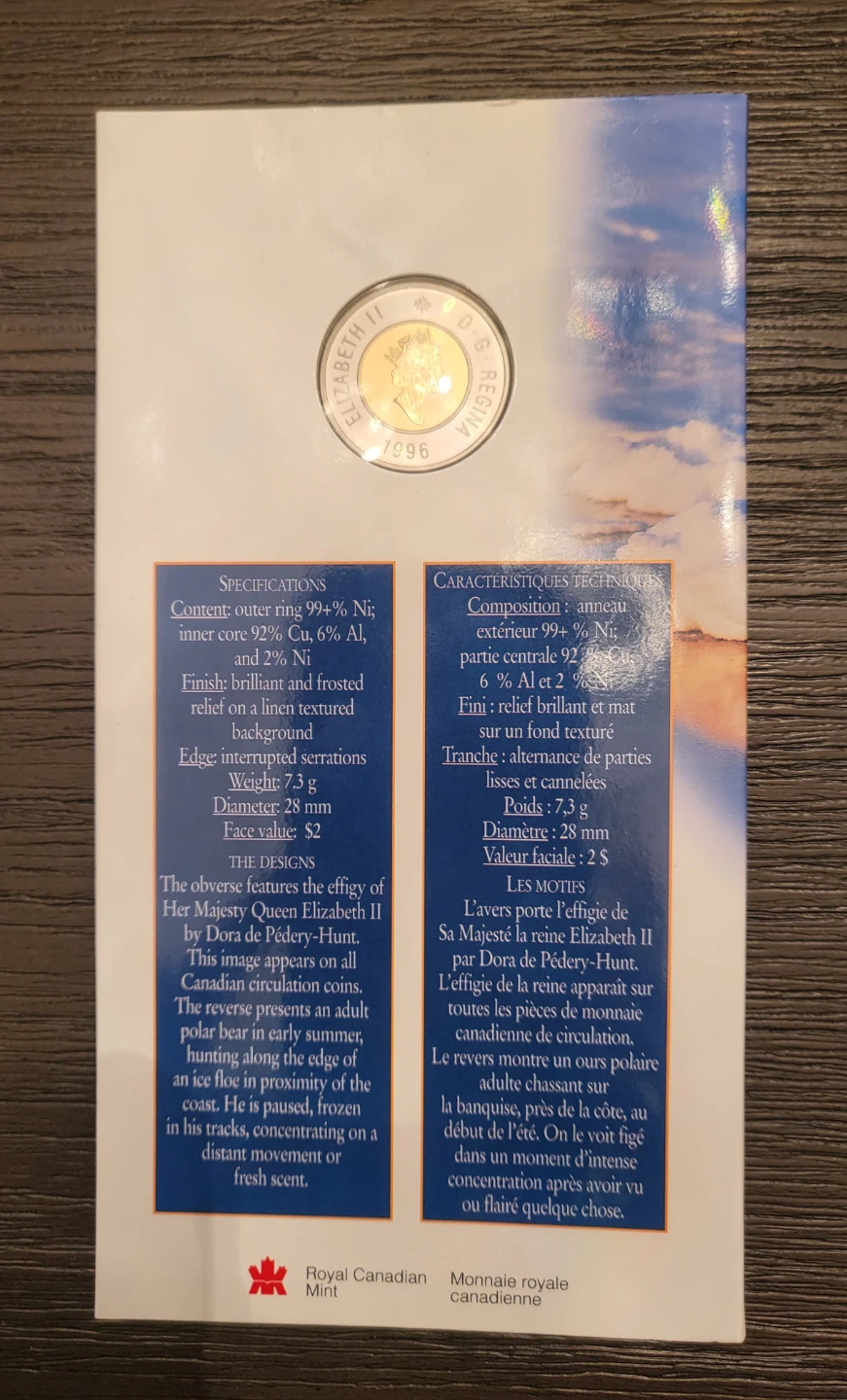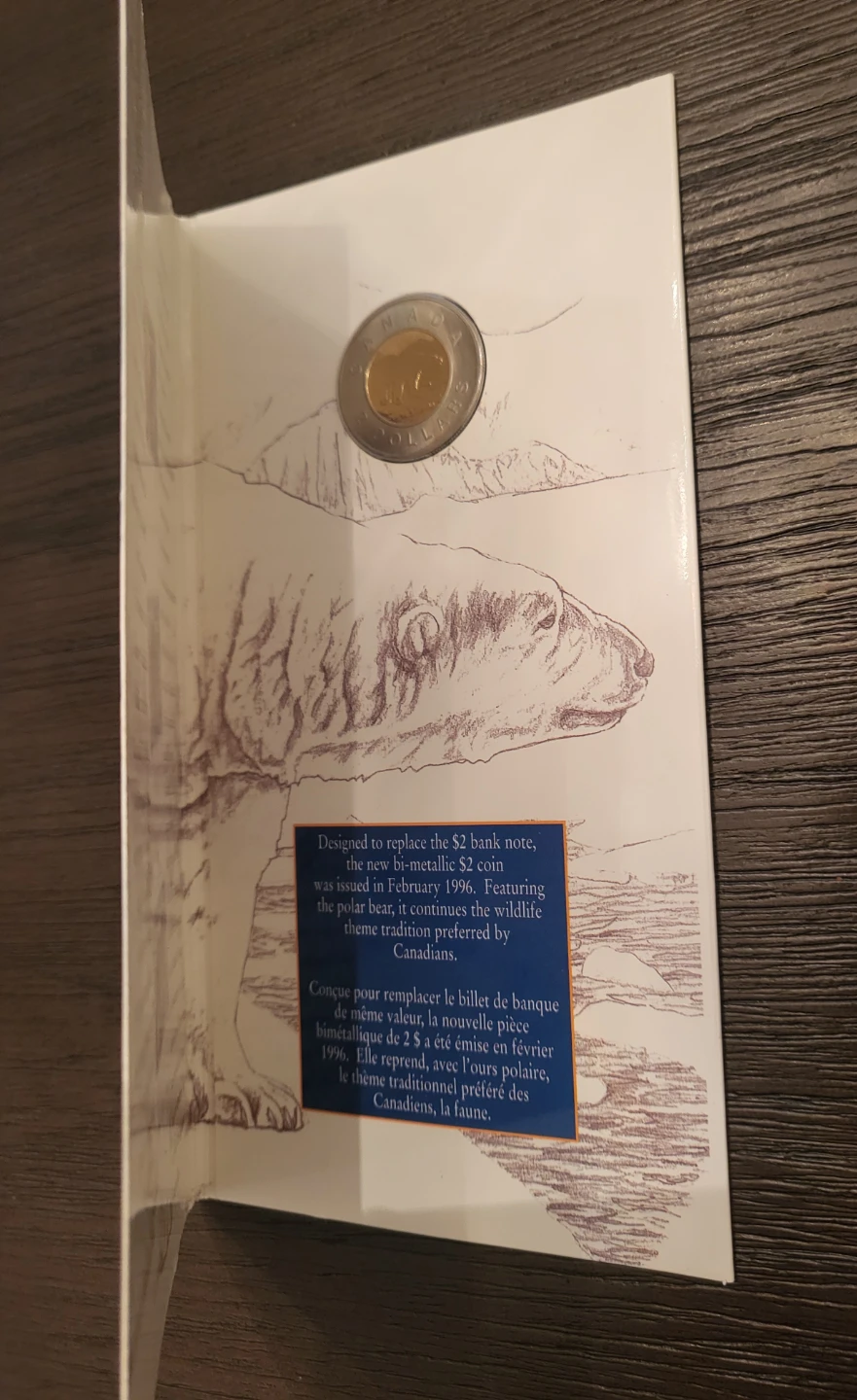 Selling Canada's New Uncirculated $2 Coin from 1996! This bi-metallic $2 coin features a polar bear design and was issued in February 1996. The coin is designed to replace the $2 bank note.
