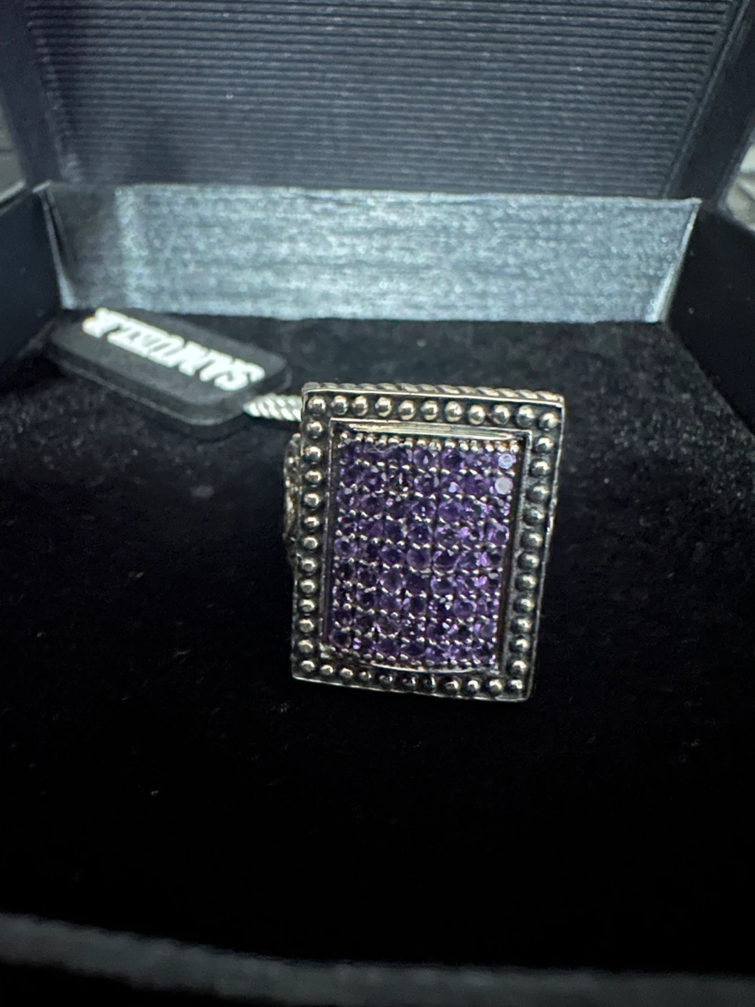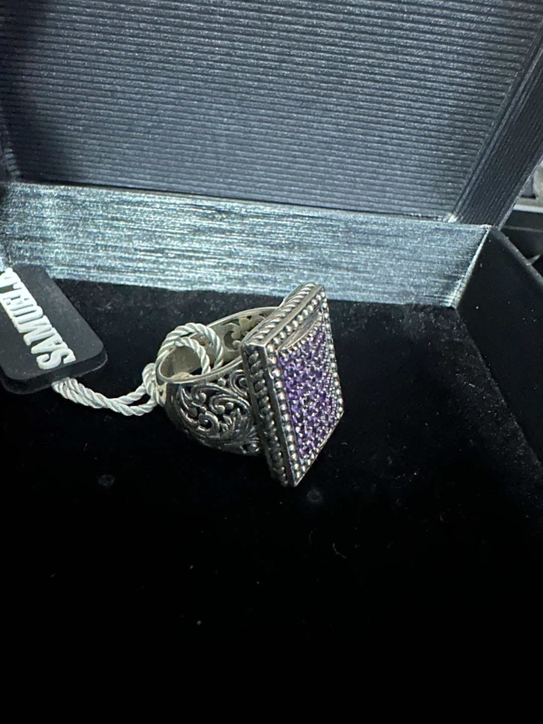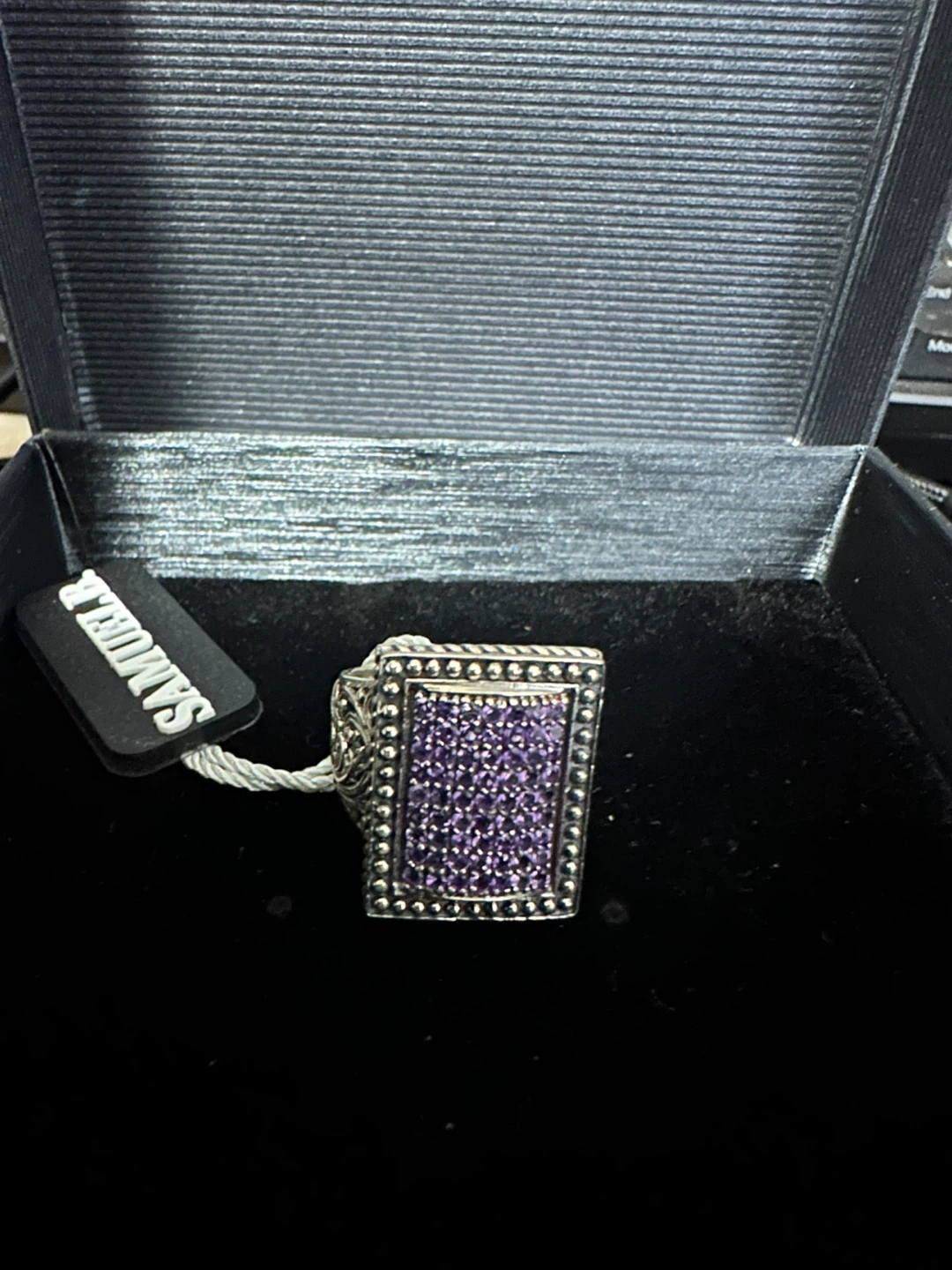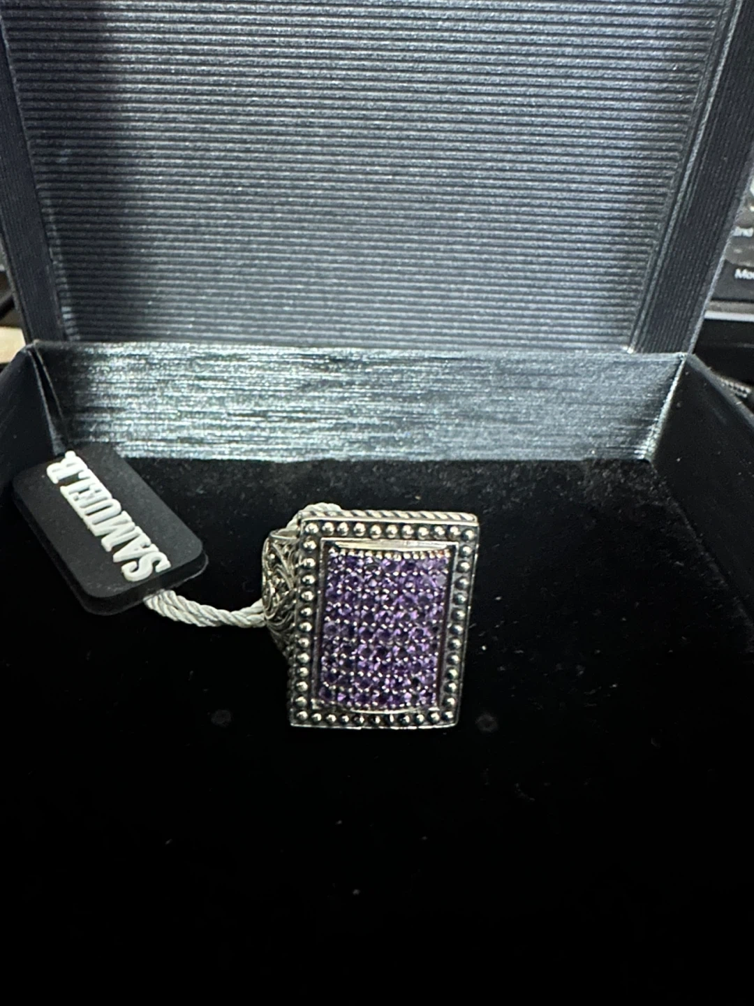 Selling a stunning Samuel B. Collection ring! It features a beautiful sterling silver design with a square-shaped amethyst stones. Size 6