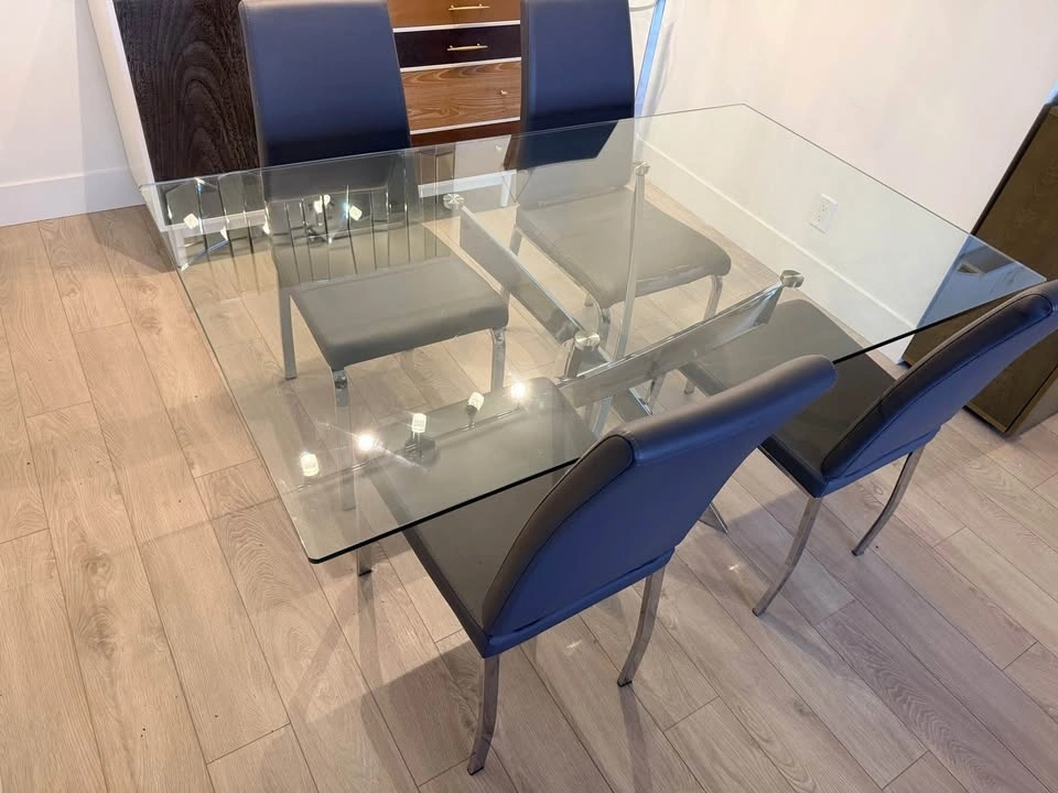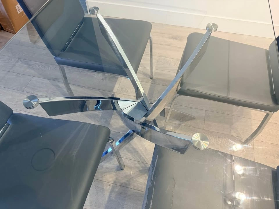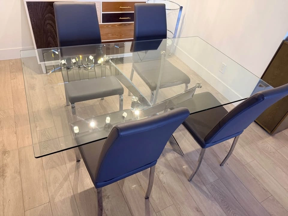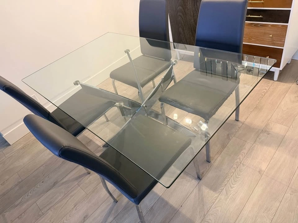 Modern Glass Dining Table + 4 Chairs (Chairs Included Free)