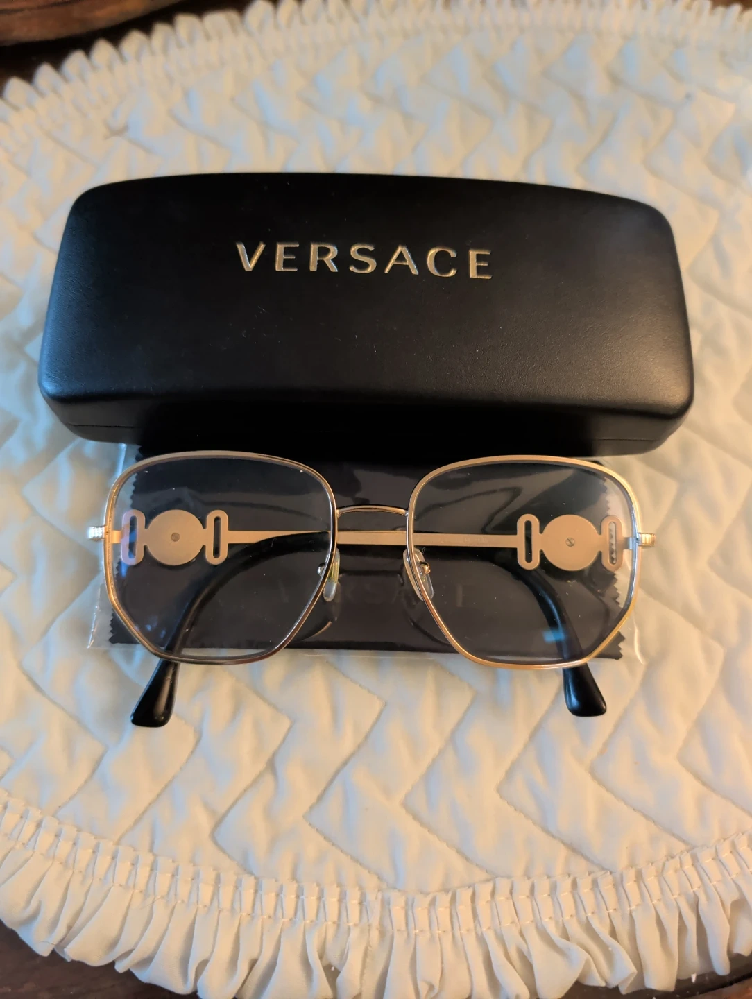Selling a pair of Versace glasses with a gold frame. They're in great condition and come with the original case. The model number is VE1283, and they originally retailed for $409.