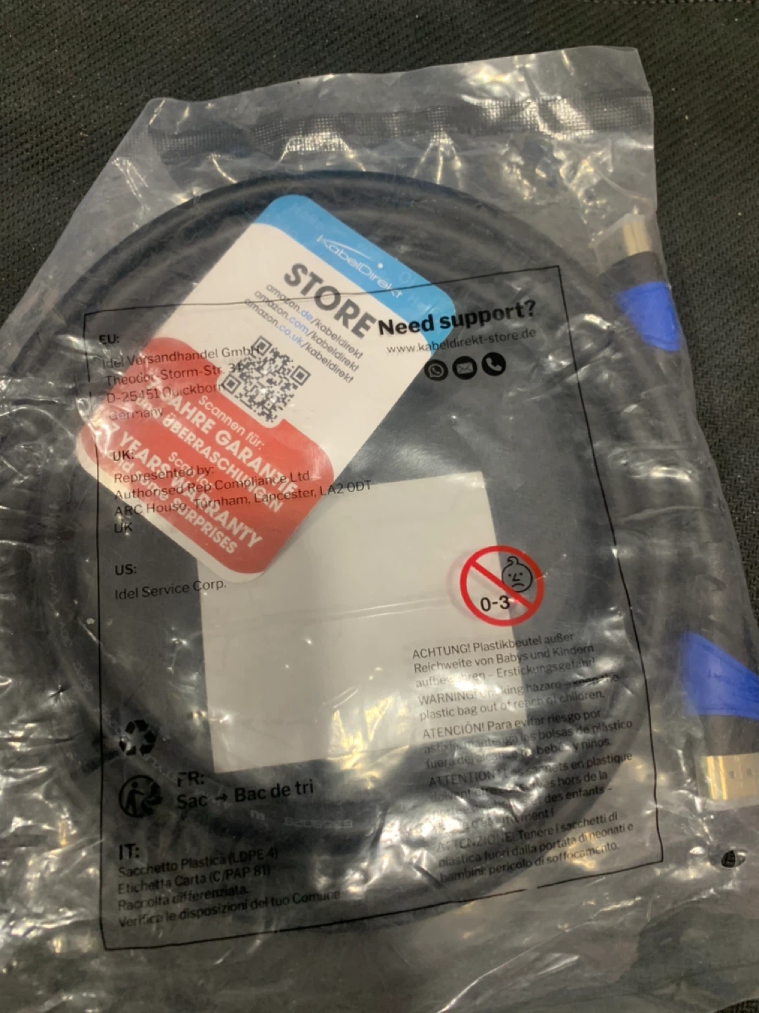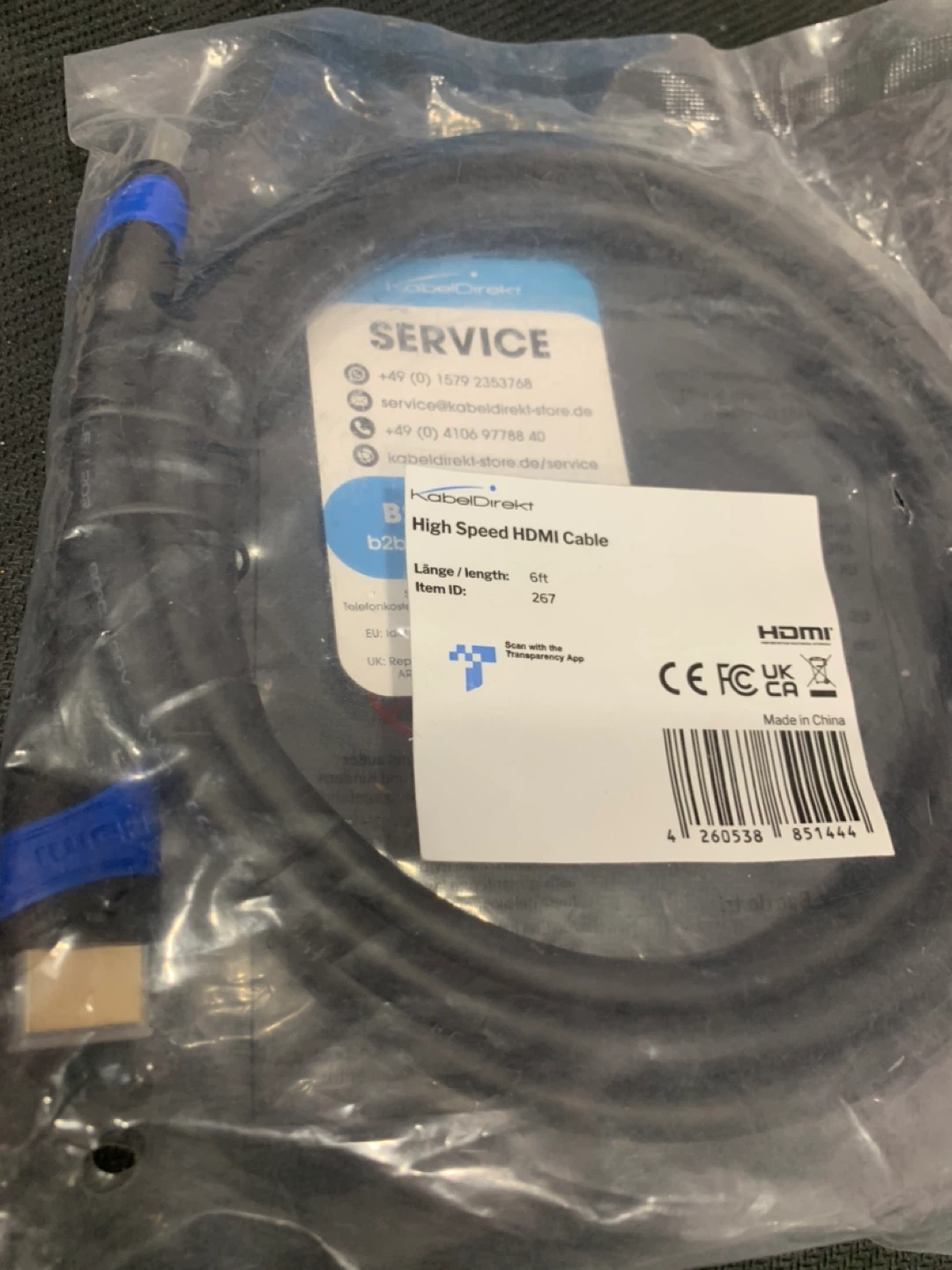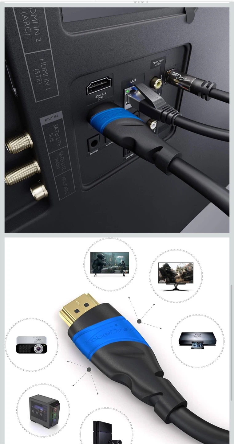 Selling a brand new KabelDirekt High Speed HDMI Cable, still in its original packaging! This is a 6ft cable, perfect for connecting your devices. It supports 8K at 60Hz and HDMI 2.1, ensuring a high-quality connection for your home theatre or gaming setup. The cable also features ARC (Audio Return Channel) and supports 7.1 surround sound.
