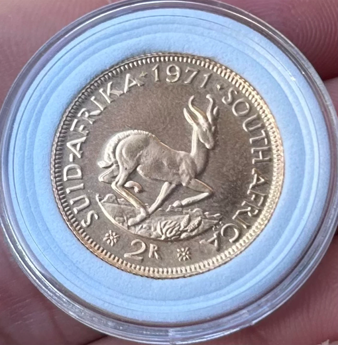 - Selling a 1971 South Africa 2 Rand coin. Very rare Gold coin and is priced reasonably even though it’s virtually impossible to find on the market today. - If the post is up the item is still available to purchase.