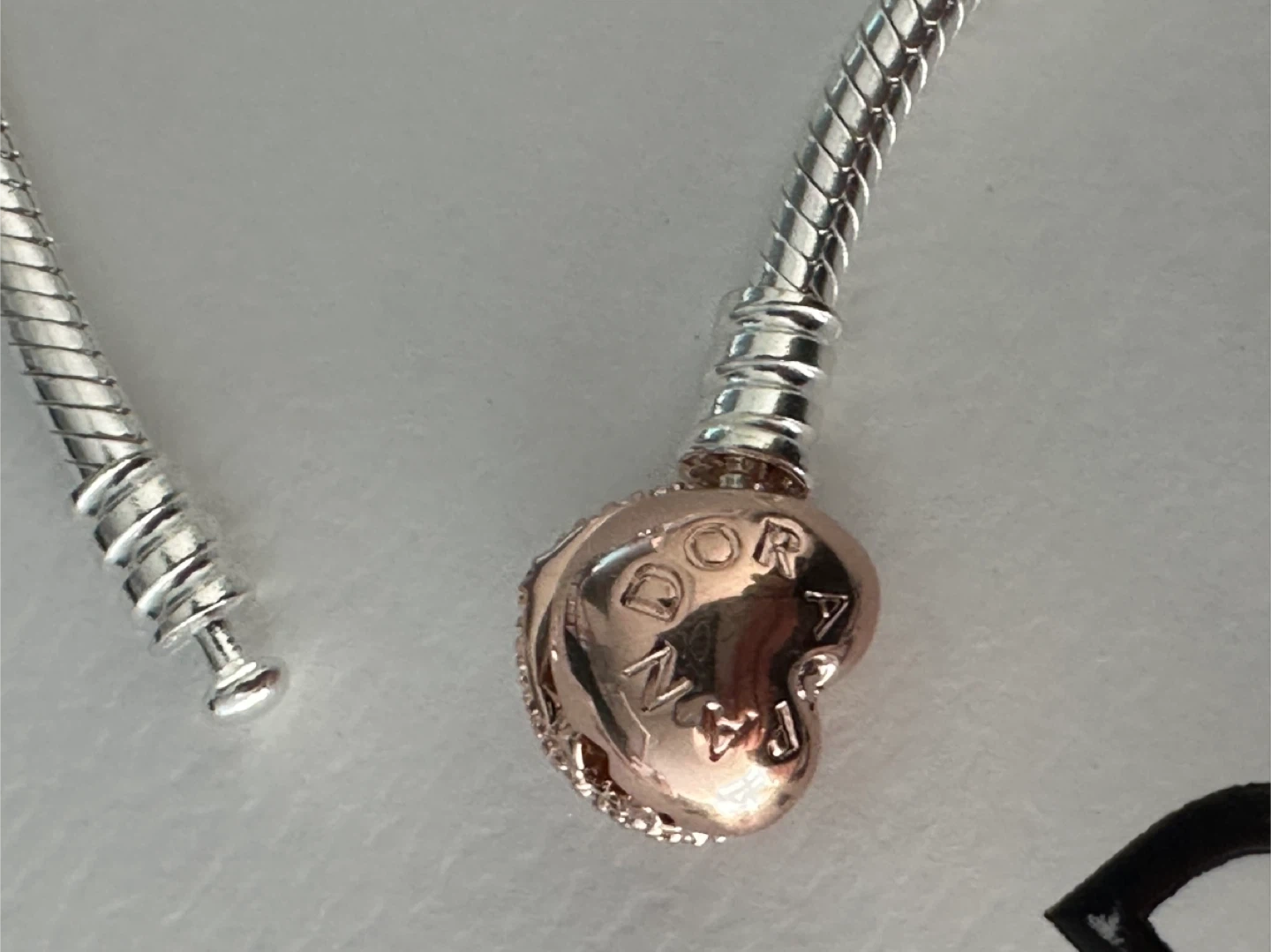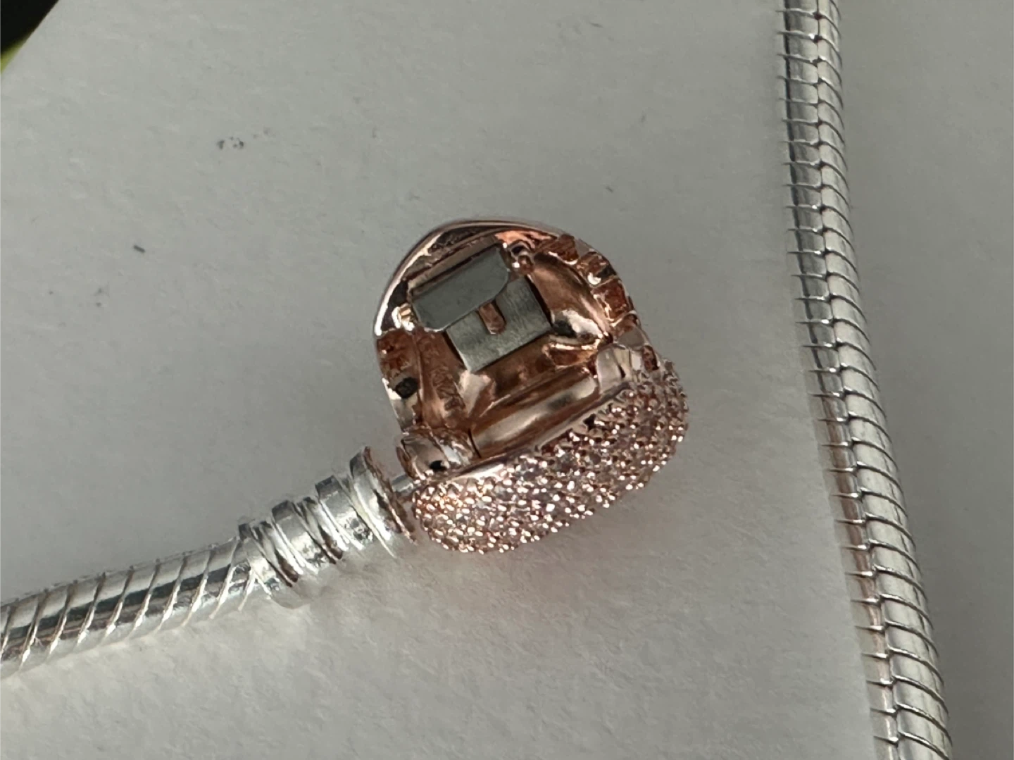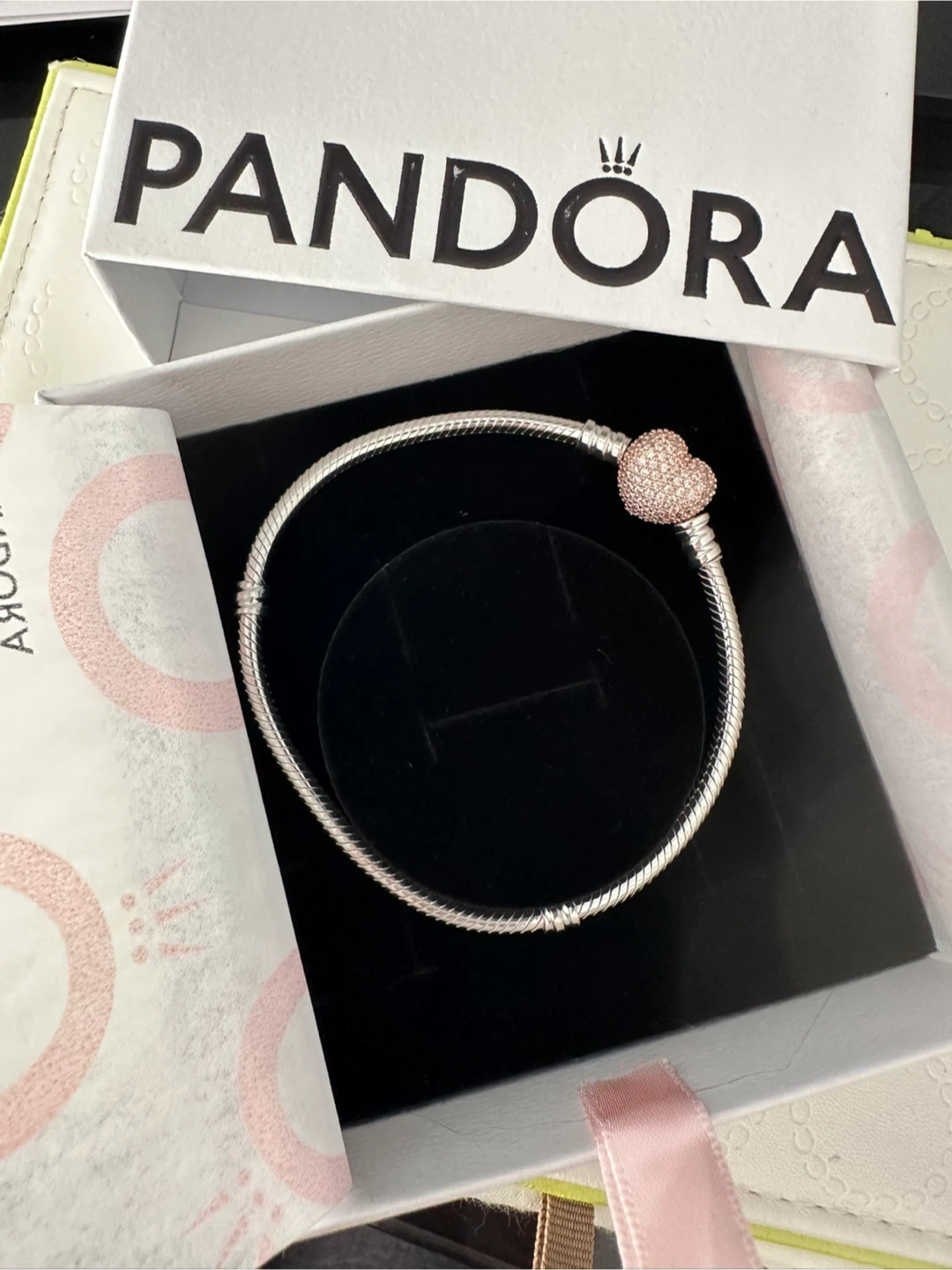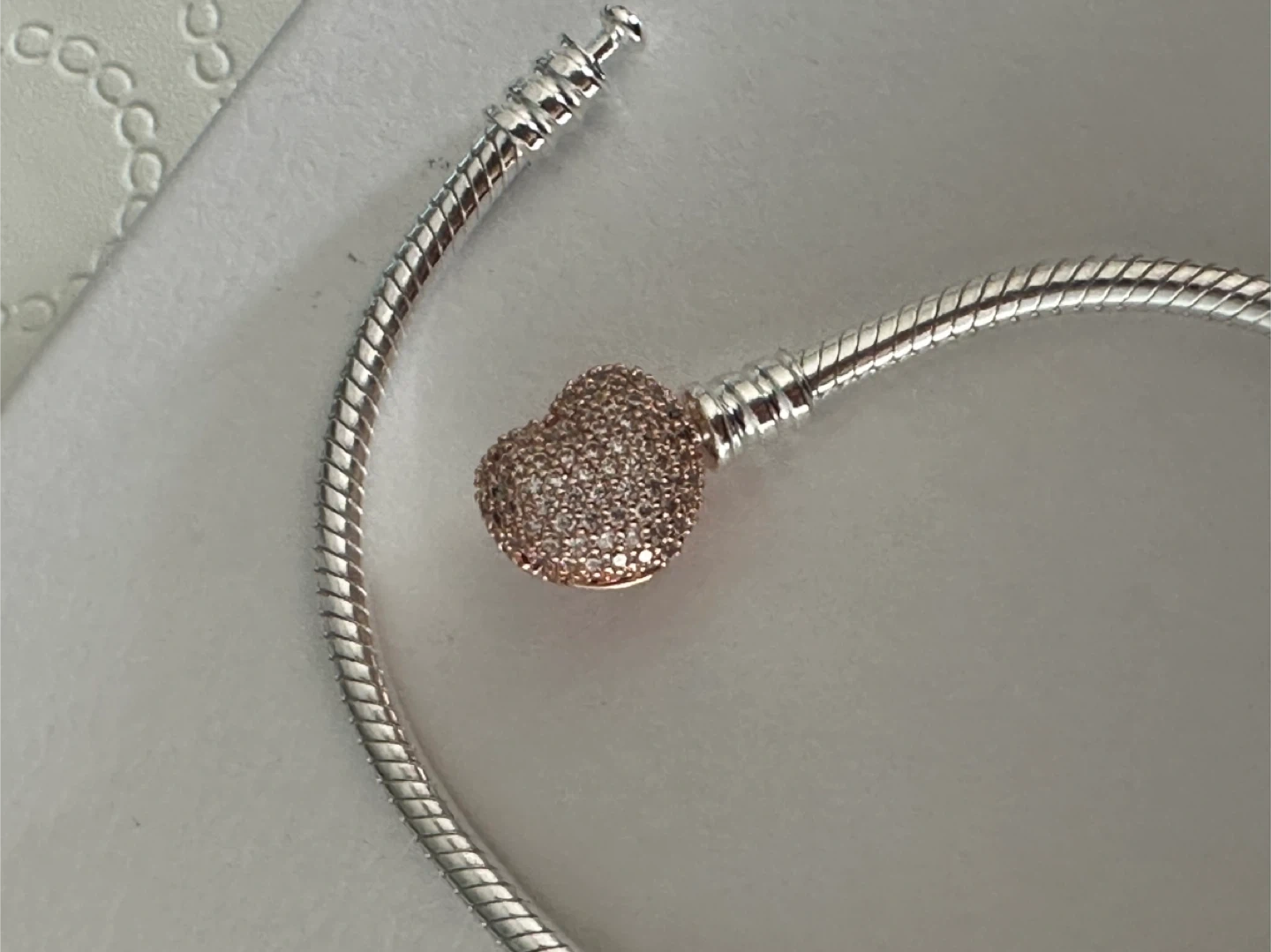Authentic Pandora Bracelet w Rose Gold Pavé Heart (New) - 19cm