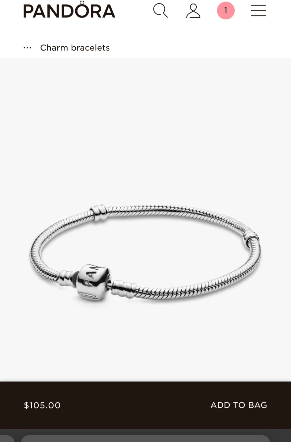 New classic Pandora bracelet - size 18cm or 7.1” and size 19cm or 7.5”Average sizing.
