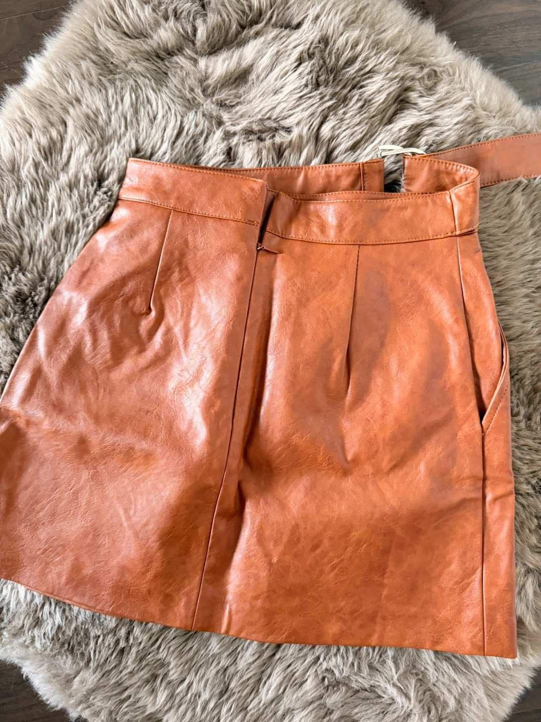 Selling a Zara mini skirt in a lovely brown colour! It's a size XS and in great condition. Perfect for adding a bit of edge to your wardrobe. The skirt features a belted waist and front button detailing.