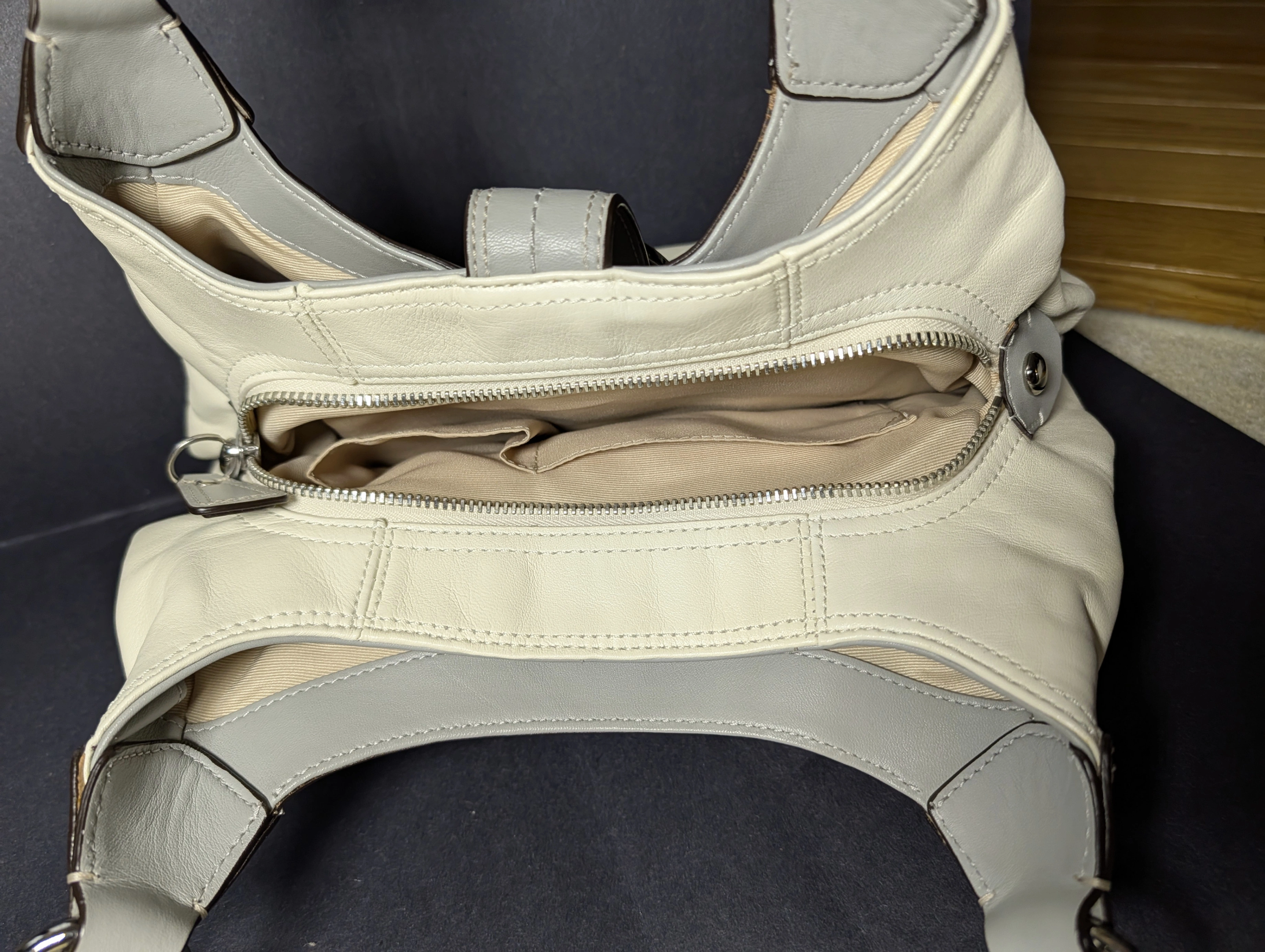 Only used once. Has 3 separated compartments. 2 zipper pockets.