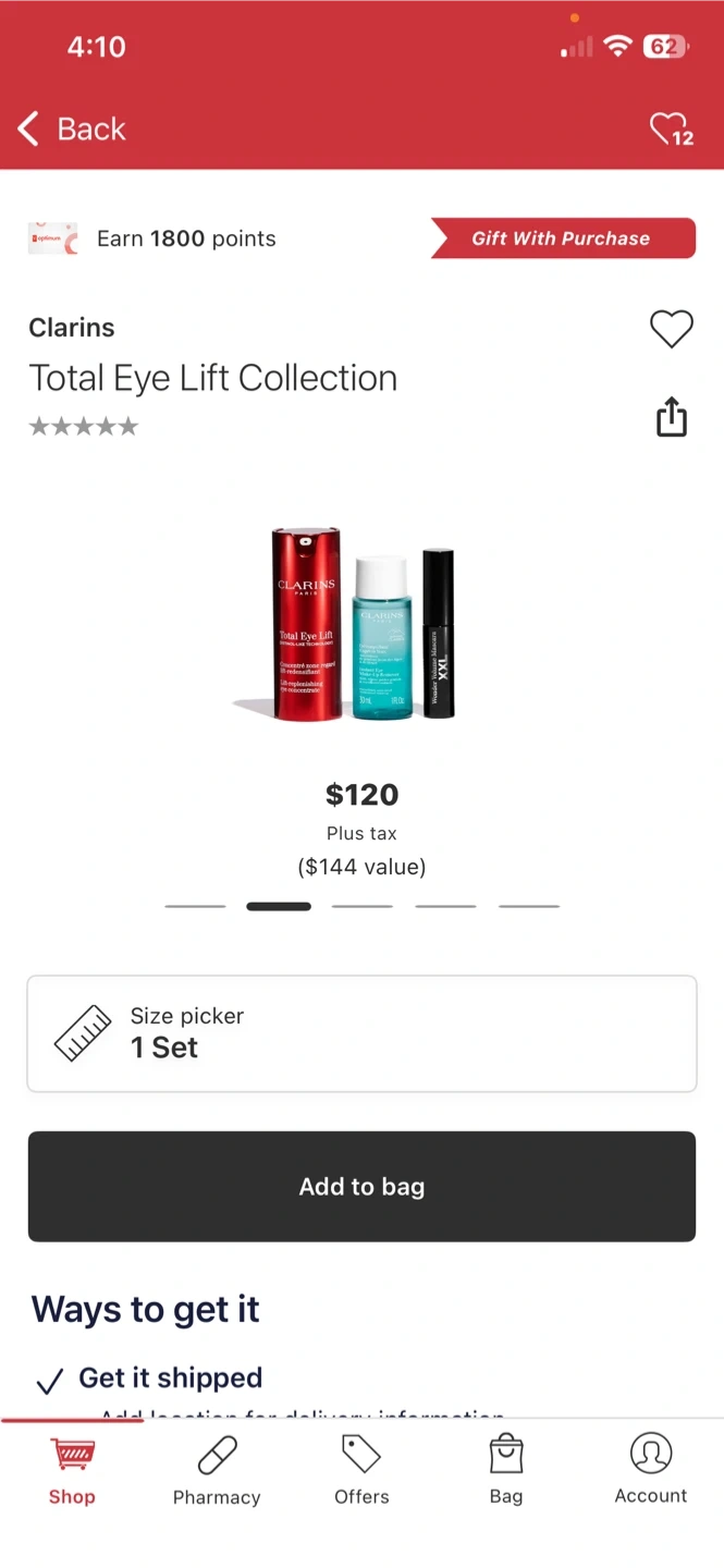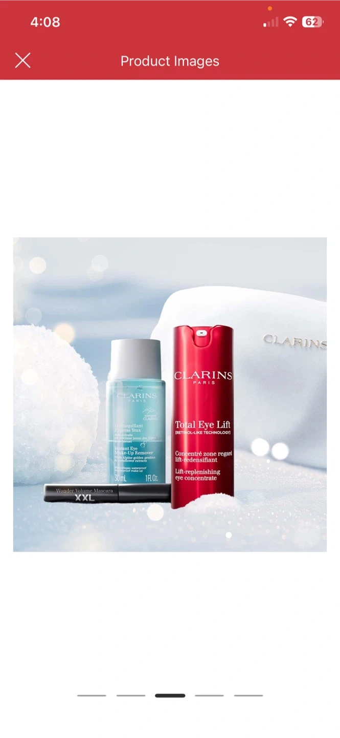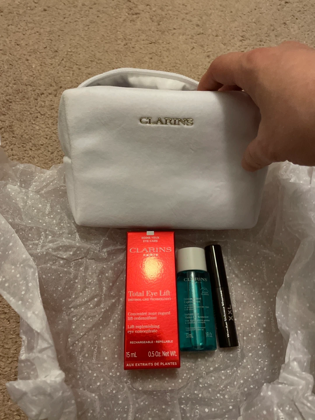Clarins Total Eye Lift Collection set! It includes a lift-replenishing eye concentrate, makeup remover, and Wonder Volume Mascara XXL. Originally bought for $120!