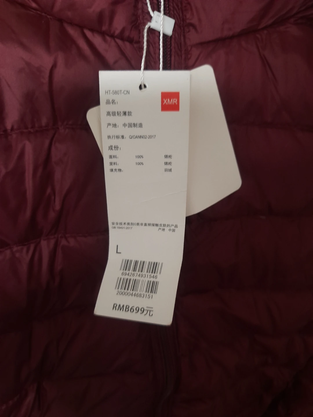 XMR Lightweight Down new Jacket - Size L