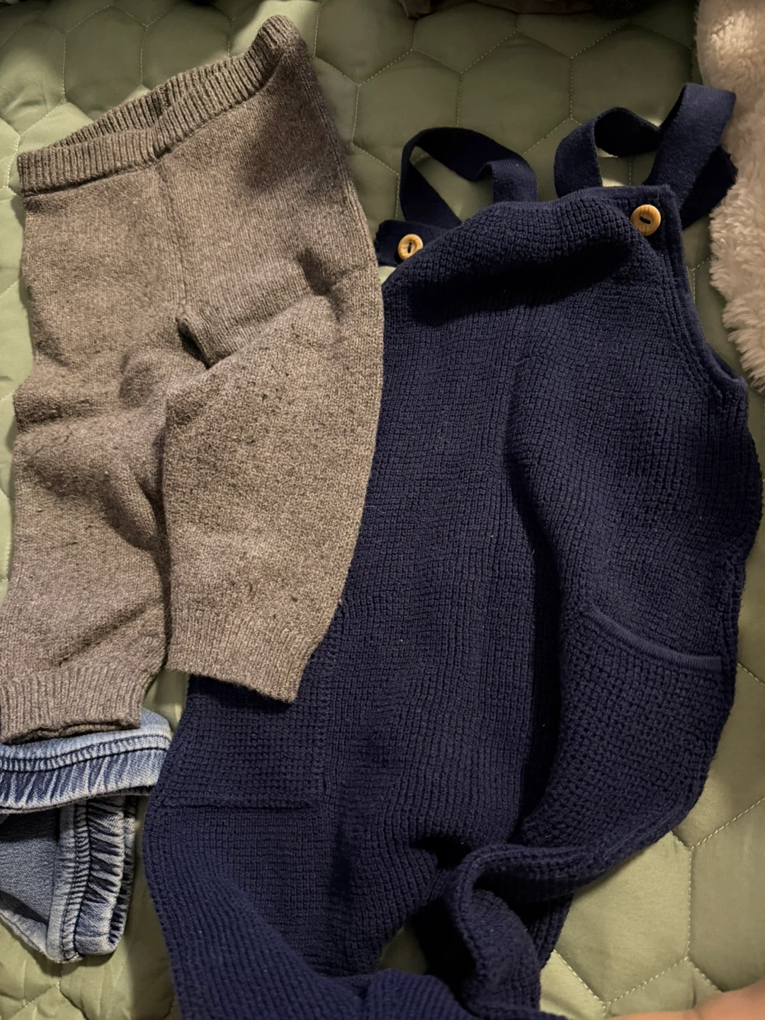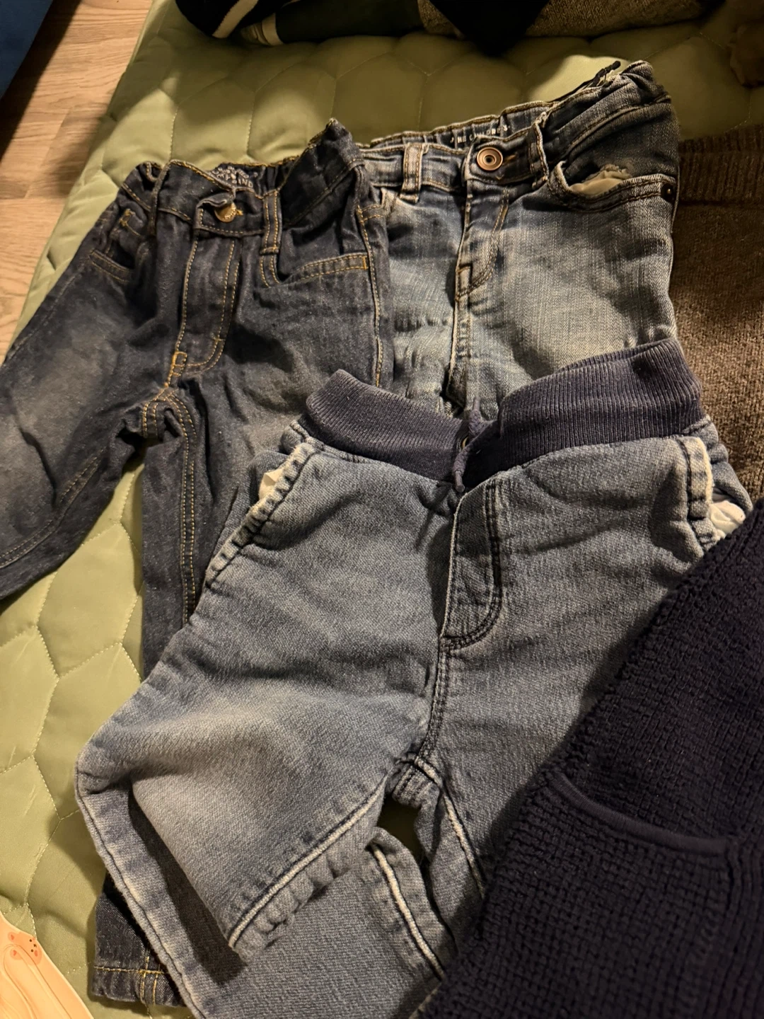 Selling a bundle of baby clothes, perfect for your little one! Includes a pair H&M Blue knit-overalls 2T, Gray thick pants Baby BiGosh 18 months, Oshkosh 2T blue pants, Children’s Place Jeans 18-24 Months, Lucky Brand Jeans 2T