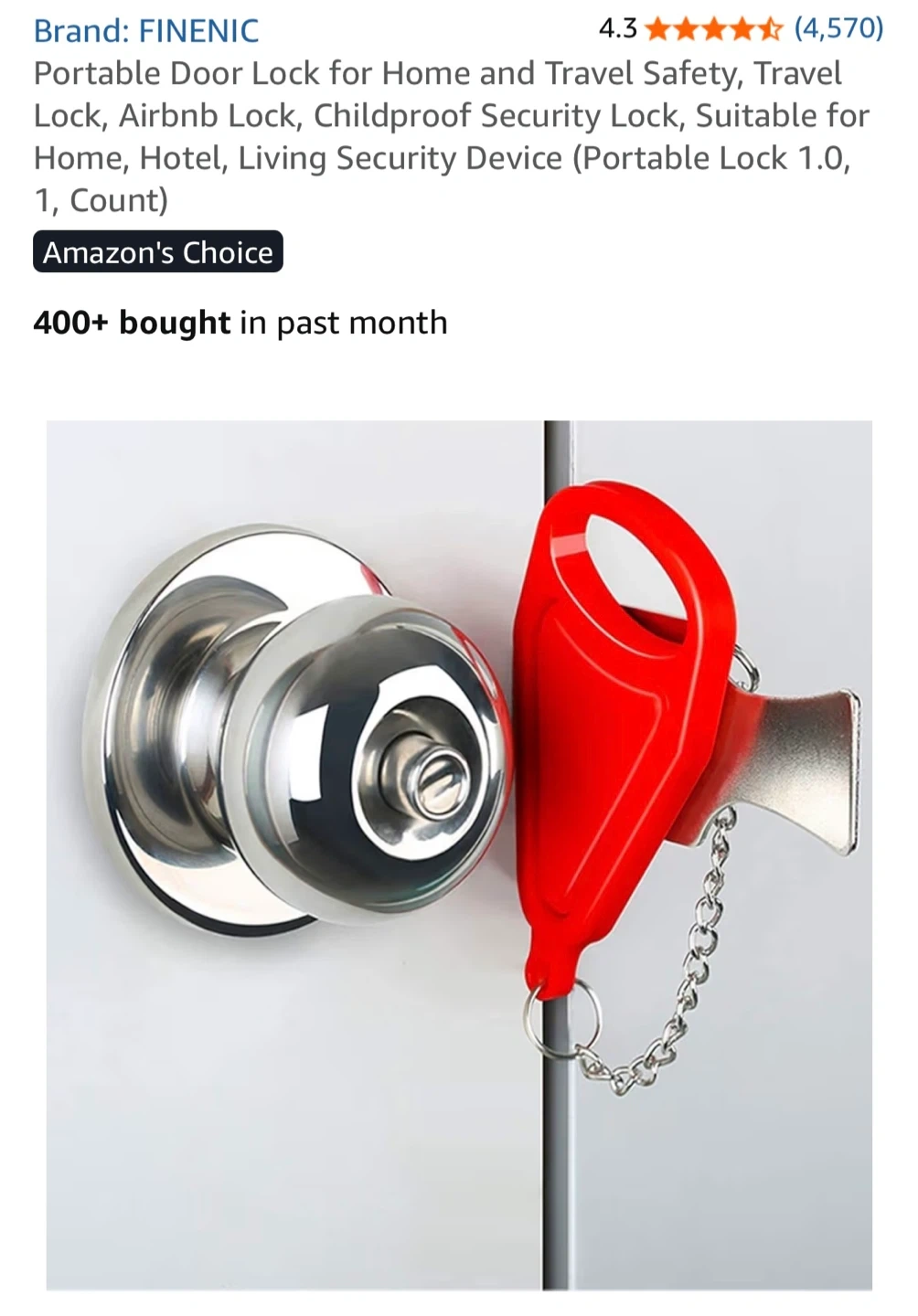 This is a portable door lock, perfect for adding extra security when you're travelling. It's easy to use and can provide peace of mind in hotels or Airbnb. It is suitable for Home, Hotel, Living Security Device (Portable Lock 1.0, 1 Count)
