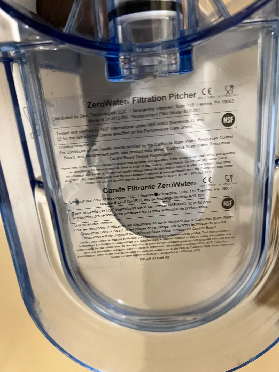 Selling a ZeroWater Filtration Pitcher. It's in great condition and ready to use! This pitcher uses a 5-stage filtration system to remove virtually all dissolved solids from your water, giving you the purest taste possible