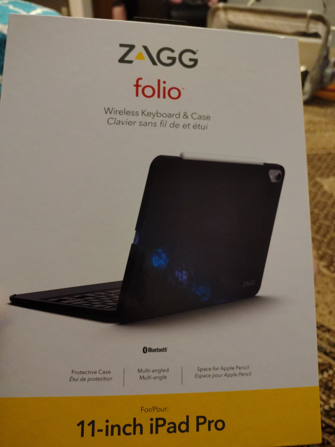 Selling a Folio wireless keyboard and case for the 11-inch iPad Pro. It's a protective case with a multi-angle stand and space for an Apple Pencil. It also connects via Bluetooth. Perfect for productivity on the go!