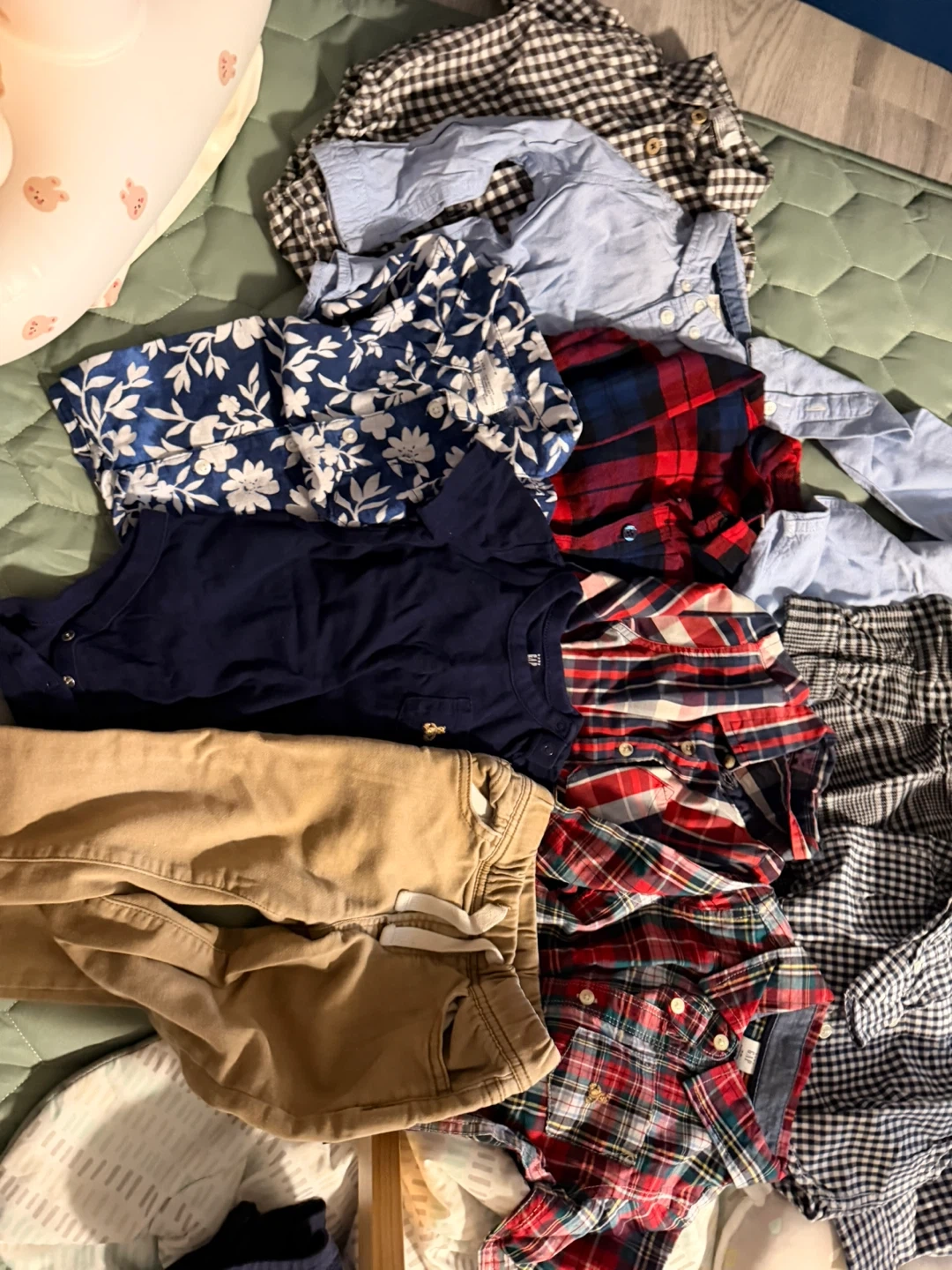 Majority is Baby Gap barely warn, 1 Lucky Brand dress shirt, 1 Rise Little Earthling and 1 H&M dress shirt. T