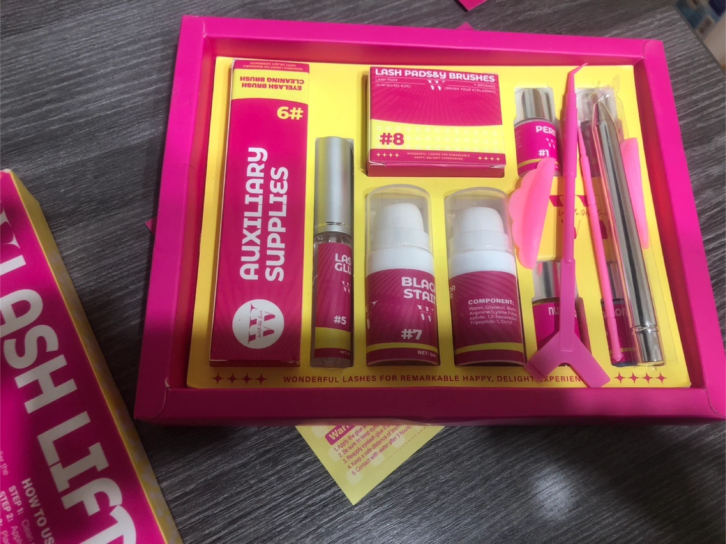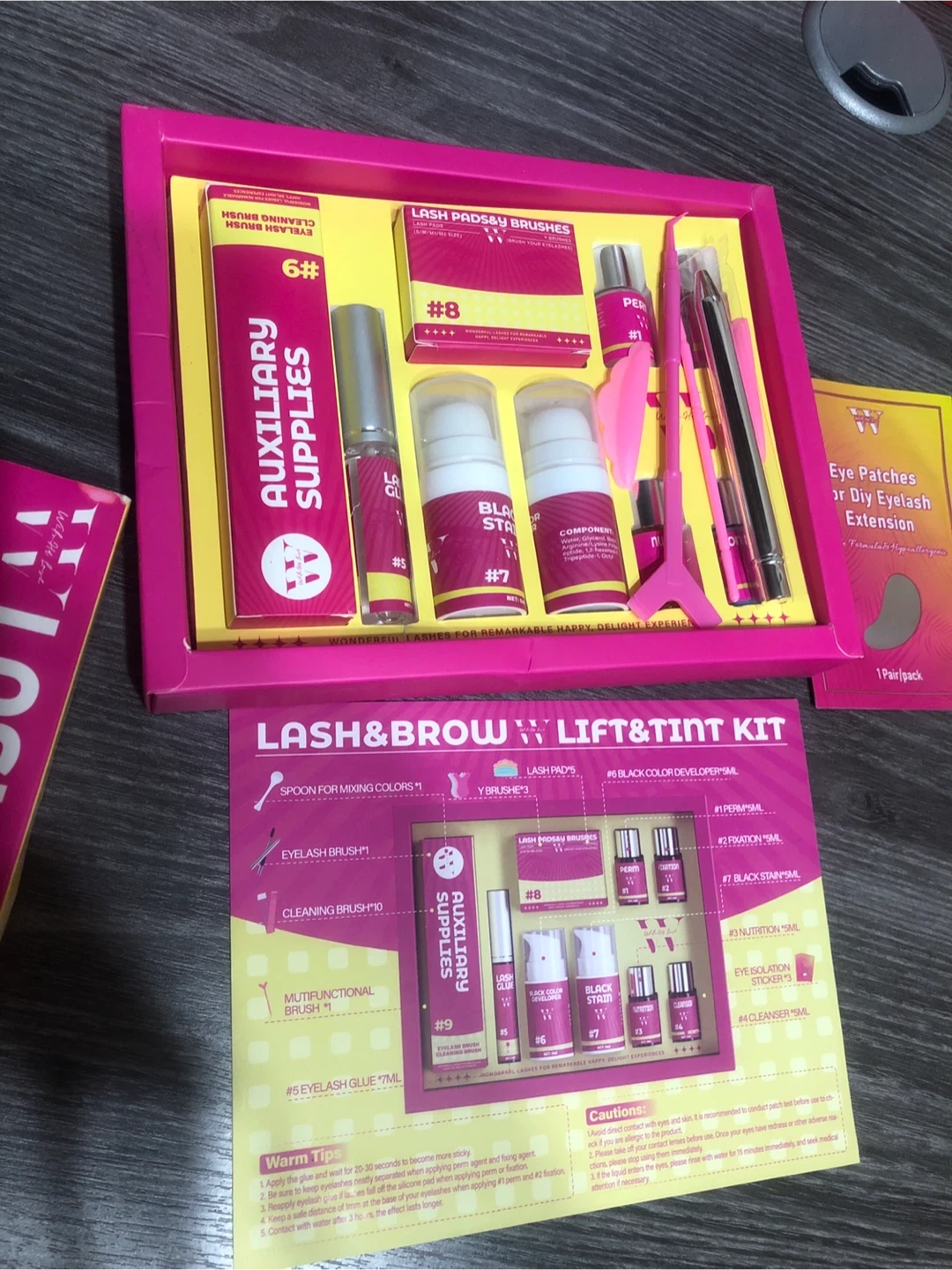 Selling a Lash & Brow Lift & Tint Kit. It includes auxiliary supplies, lash pads and brushes, perm, fixation, nutrition, and cleanser! The lot number is 05/02/2025 and the expiry date is 05/01/2028!