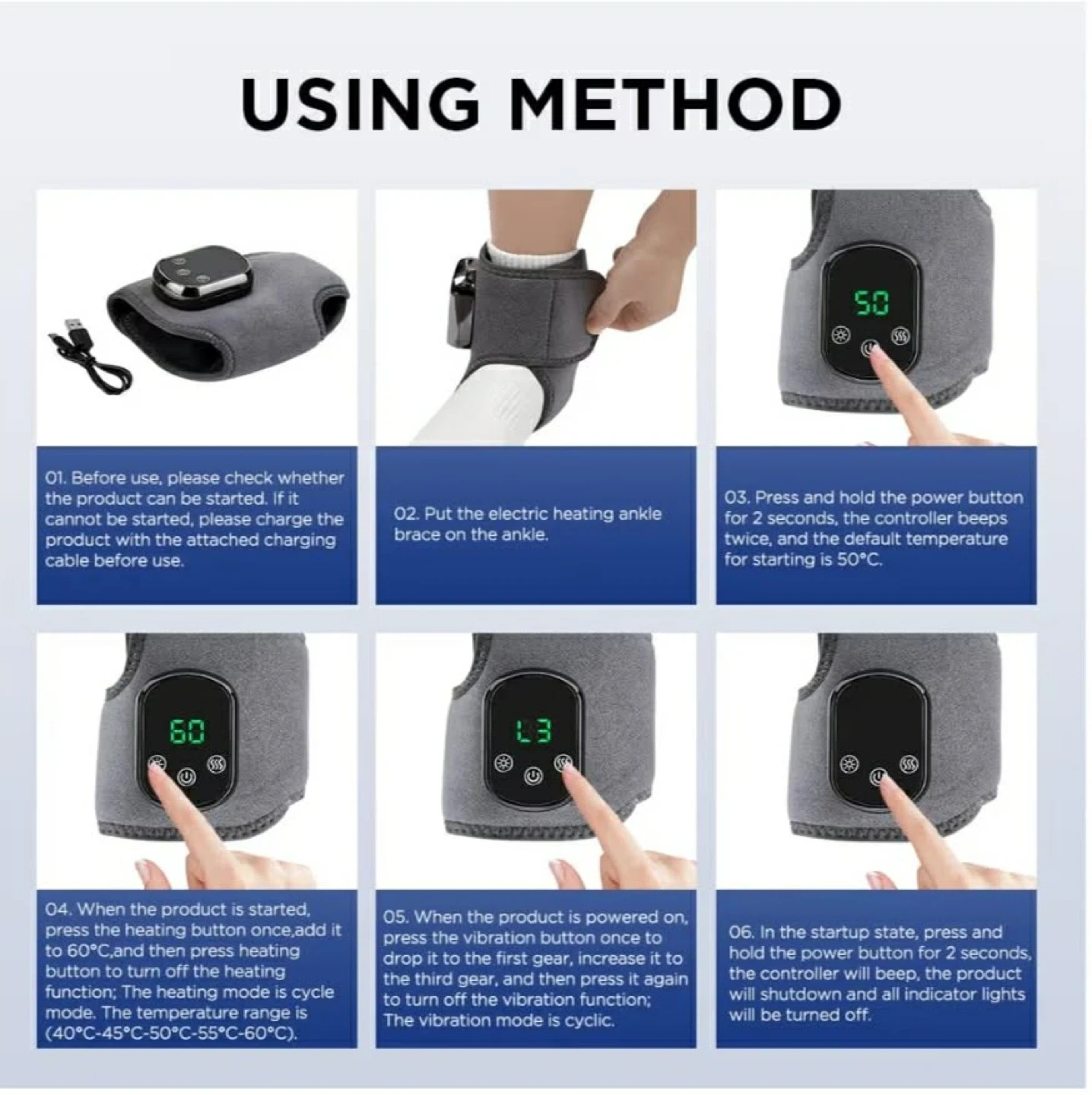 Looking to soothe those tired ankles? This ankle brace features both heat and massage vibration settings. It's designed for outdoor, office, or travel use, making it easy to carry around. It has three levels of massage vibration: first level for daily care, second level for sports recovery, and third level to soothe ankle discomfort!