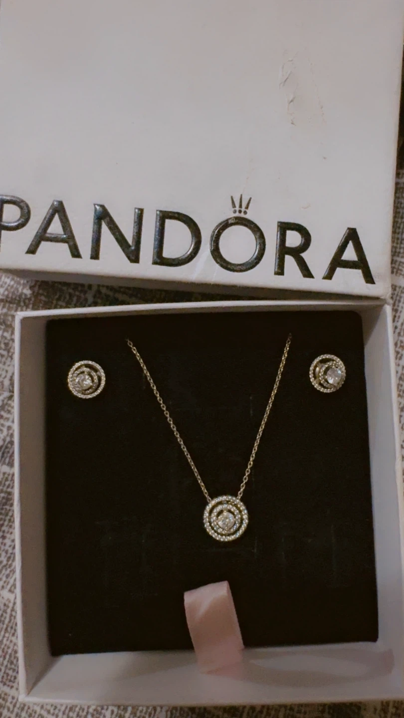 Selling a lovely Pandora necklace and earring set. It comes in its original box and is in great condition!