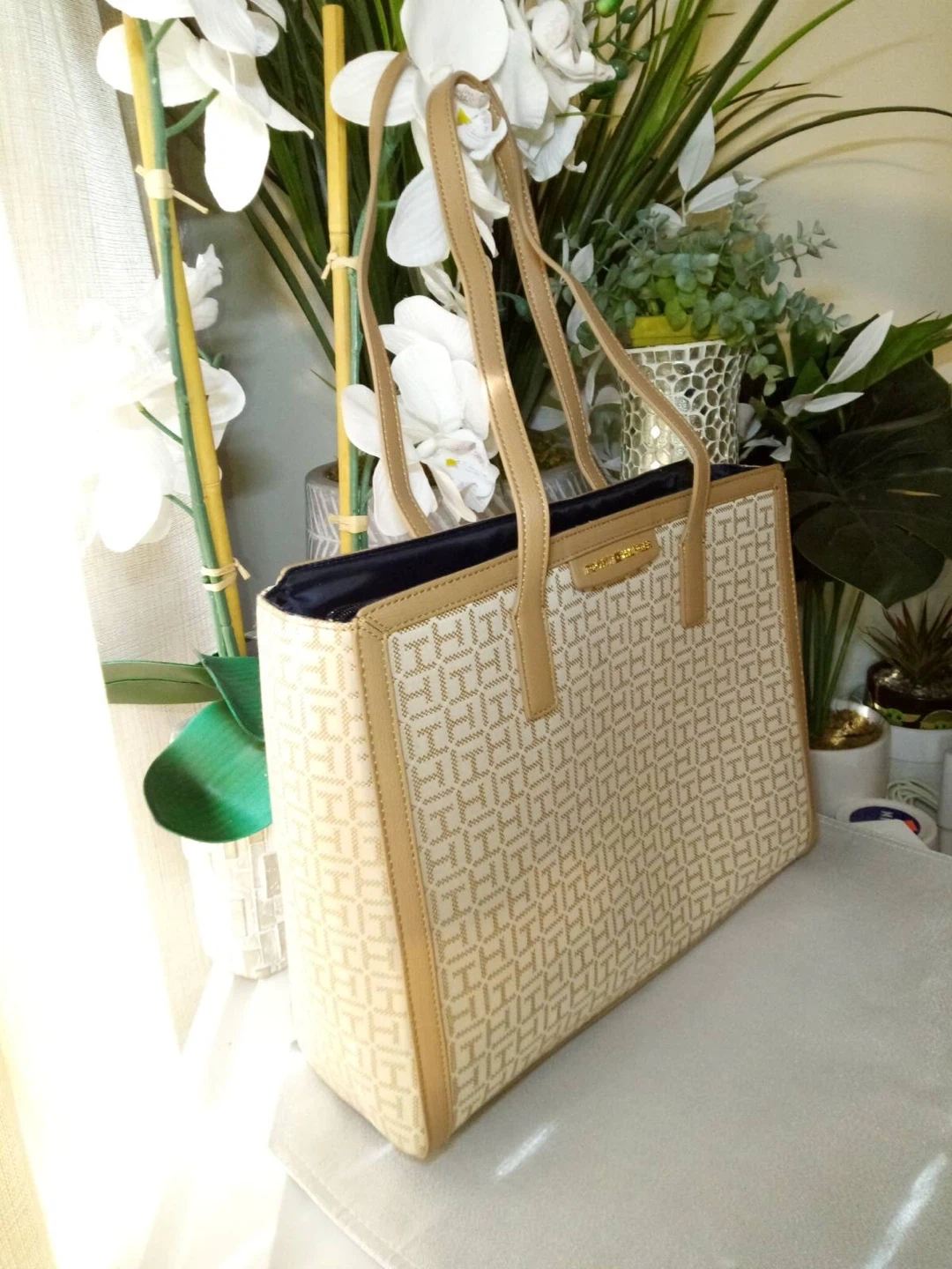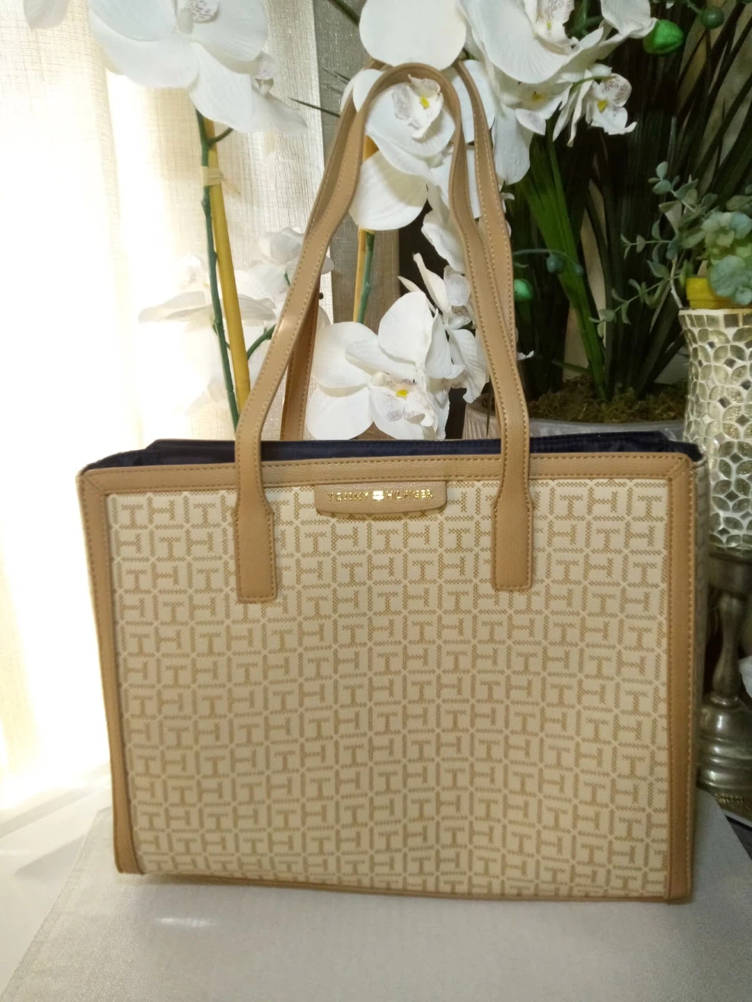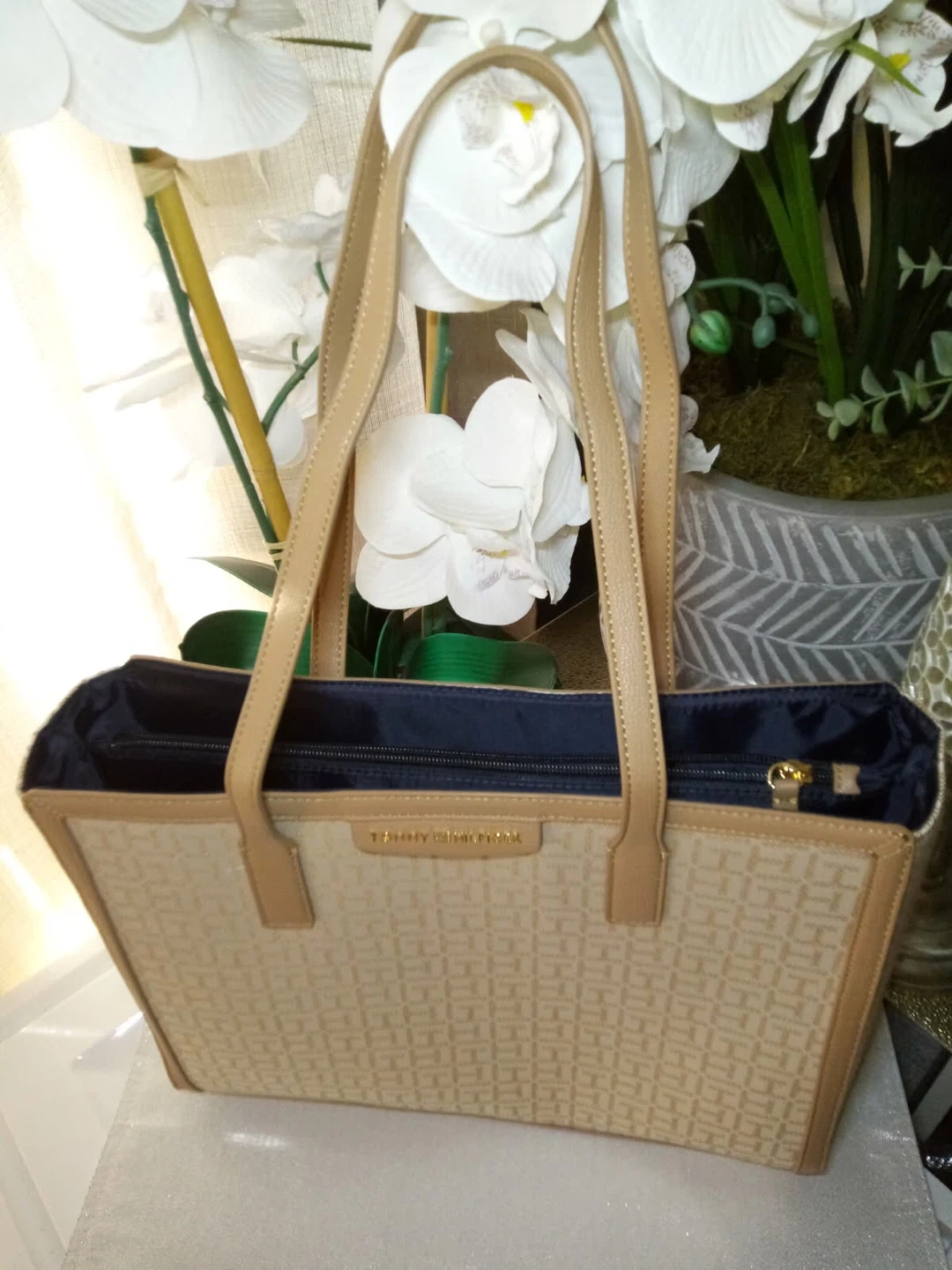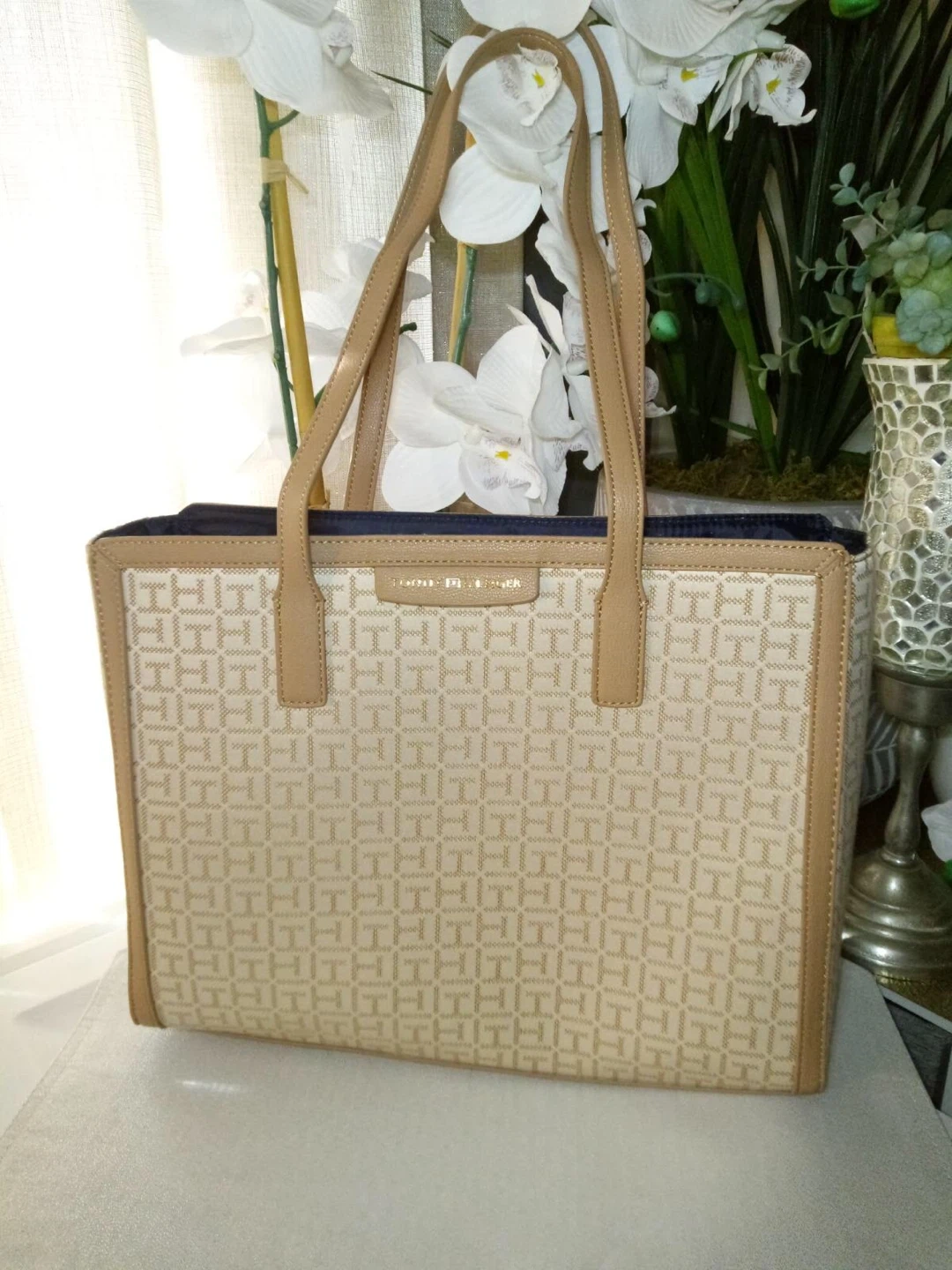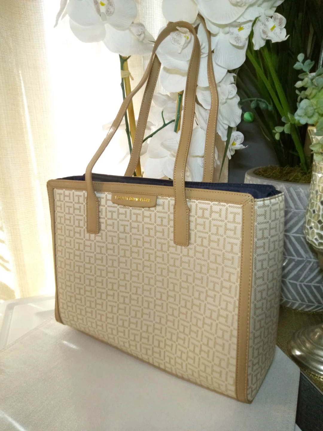Tommy Hilfiger tote bag with a beige and tan pattern. It's in great condition and ready for a new owner! Perfect for everyday use