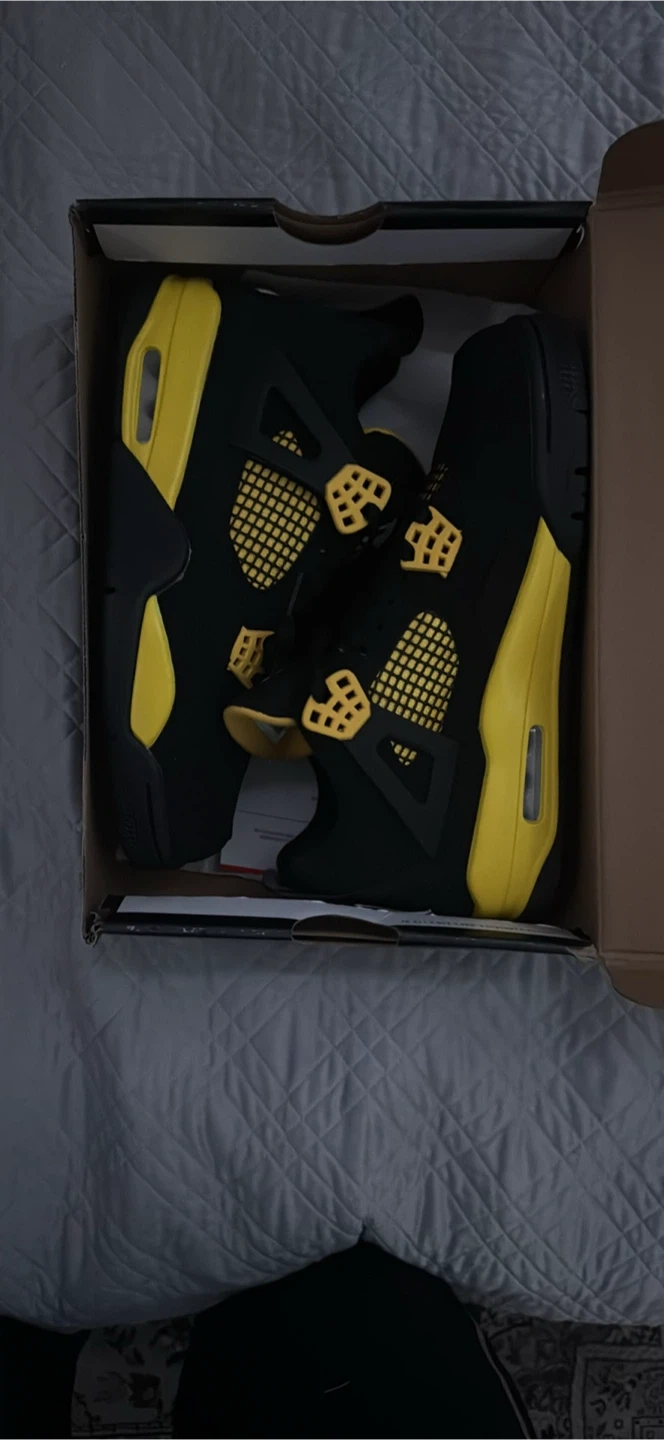 Selling a pair of Air Jordan 4 Retro in the Lightning colourway. They are a size 10 and come with the original box. Great shoes for any sneakerhead!