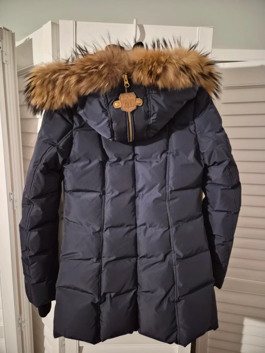Zippers work perfectly, down is still full and puffy, and fur is clean and fluffy. Light signs of normal wear only.