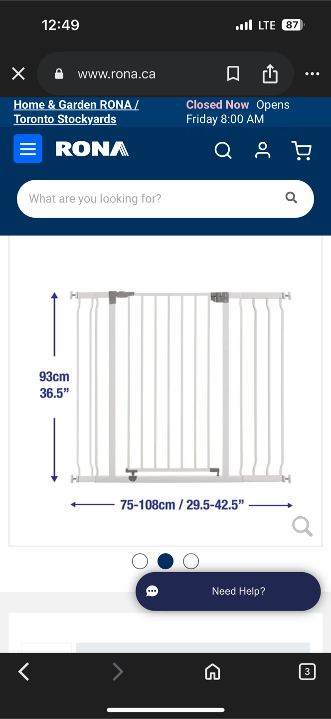 Selling a Dreambaby Security Gate. It fits openings from 75cm to 108cm (29.5" to 42.5"). The height of the gate is 93cm (36.5").