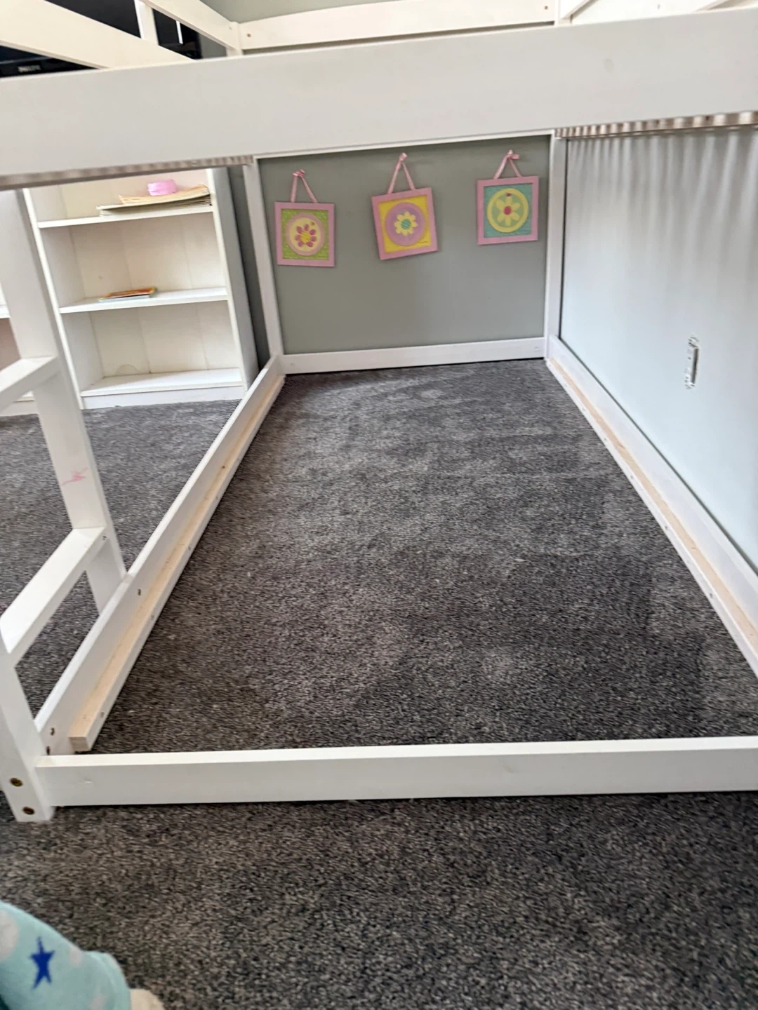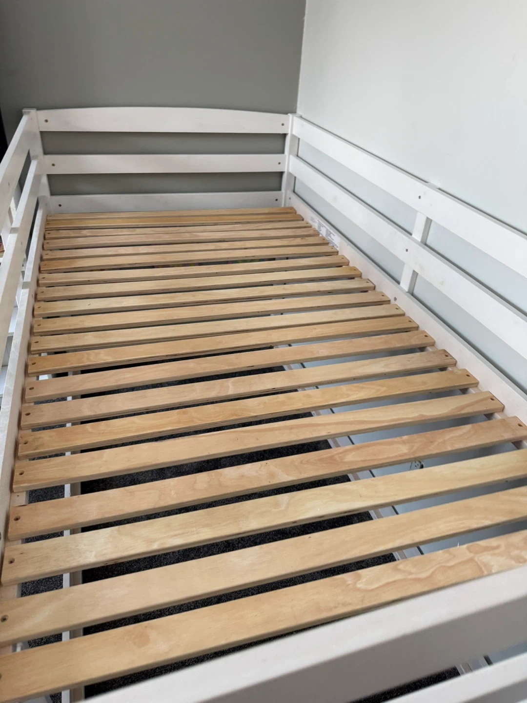Not Walmart - Selling a twin size bunk bed frame! It's made of a natural material that makes the bunk bed stand out. The closely spaced slats and sturdy pine wood frame make it stable and durable for long-lasting use. The full-length guardrails will prevent your kid from falling down while the integrated adder offers an easy access to the upper bed. This twin over twin bunk bed takes full advantage of vertical space and has an outstanding look that shows your great taste, which is ideal for a kid's room, dormitory, or apartment